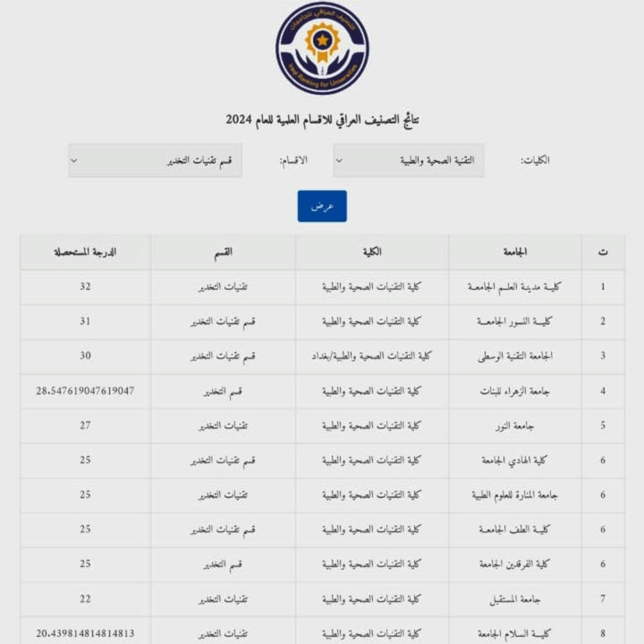 ويُعد هذا التصنيف أحد أهم المؤشرات التي تعتمدها الوزارة في تقييم الأداء الأكاديمي والبحثي للأقسام العلمية على مستوى الجامعات العراقية، وتسعى الجامعة من خلال هذا النجاح إلى تعزيز موقعها الأكاديمي على المستوى المحلي والدولي، والاستمرار في تقديم تعليم نوعي يسهم في تطوير القطاع الصحي في العراق.