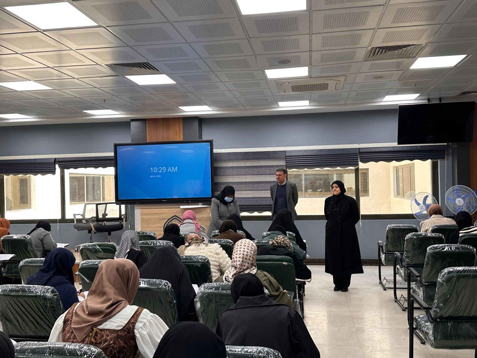 حيث قامت السيدة عميدة كلية الصيدلة أ.د. نور الدباغ برفقة معاونيها بجولة تفقدية في قاعات الامتحانات، حيث اطّلعت على طبيعة الأسئلة وآلية تنظيم الامتحانات، مؤكدة على ضرورة توفير الأجواء الملائمة للطالبات لضمان تحقيق أفضل النتائج.