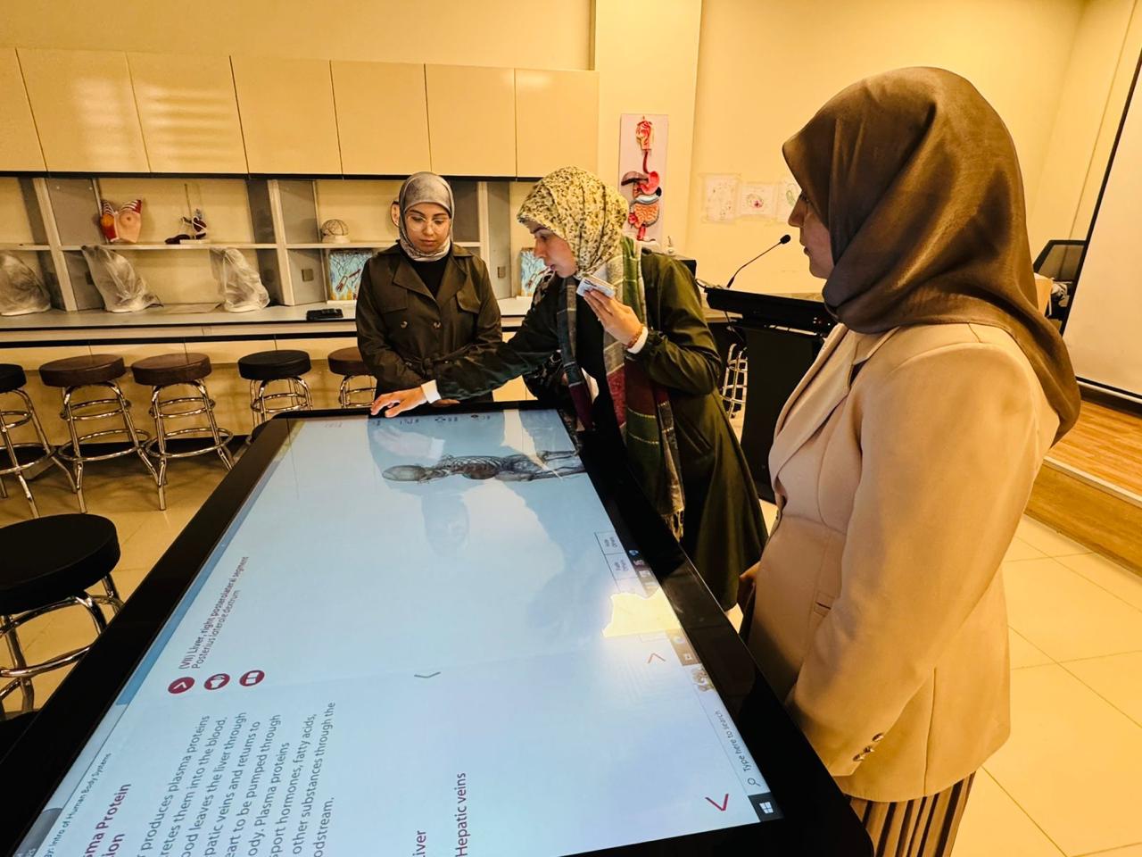 ركزت الورشة على التطبيق العملي لاستخدام الجهاز، حيث تم تعريف المشاركين بأساسيات عمل المنضدة، وتدريبهم على كيفية توظيفها في التدريس الجامعي. كما تم إعداد محاضرات تشريحية تعتمد على منهجية حل المشكلات لتحفيز التفاعل بين الطالبات.