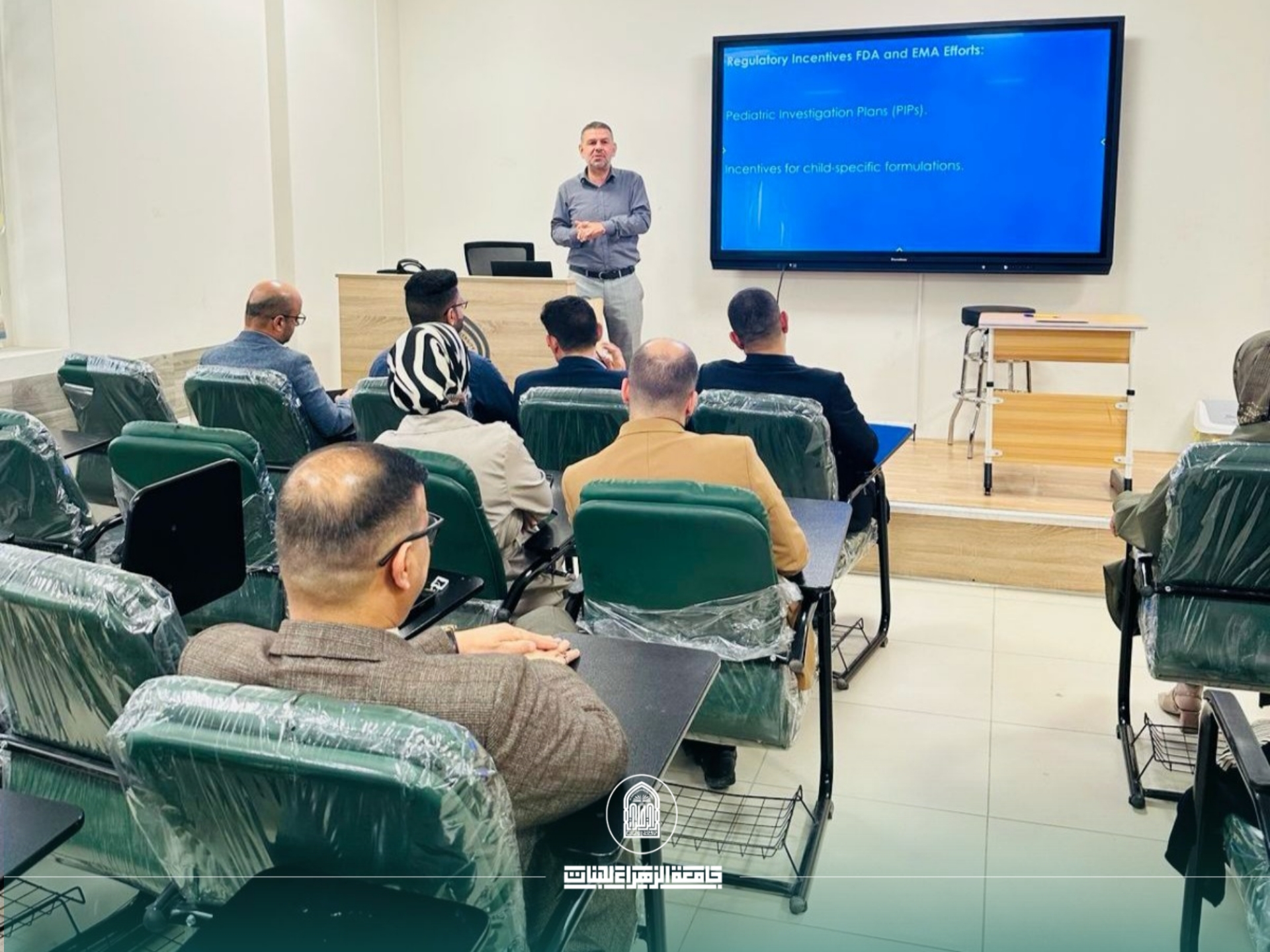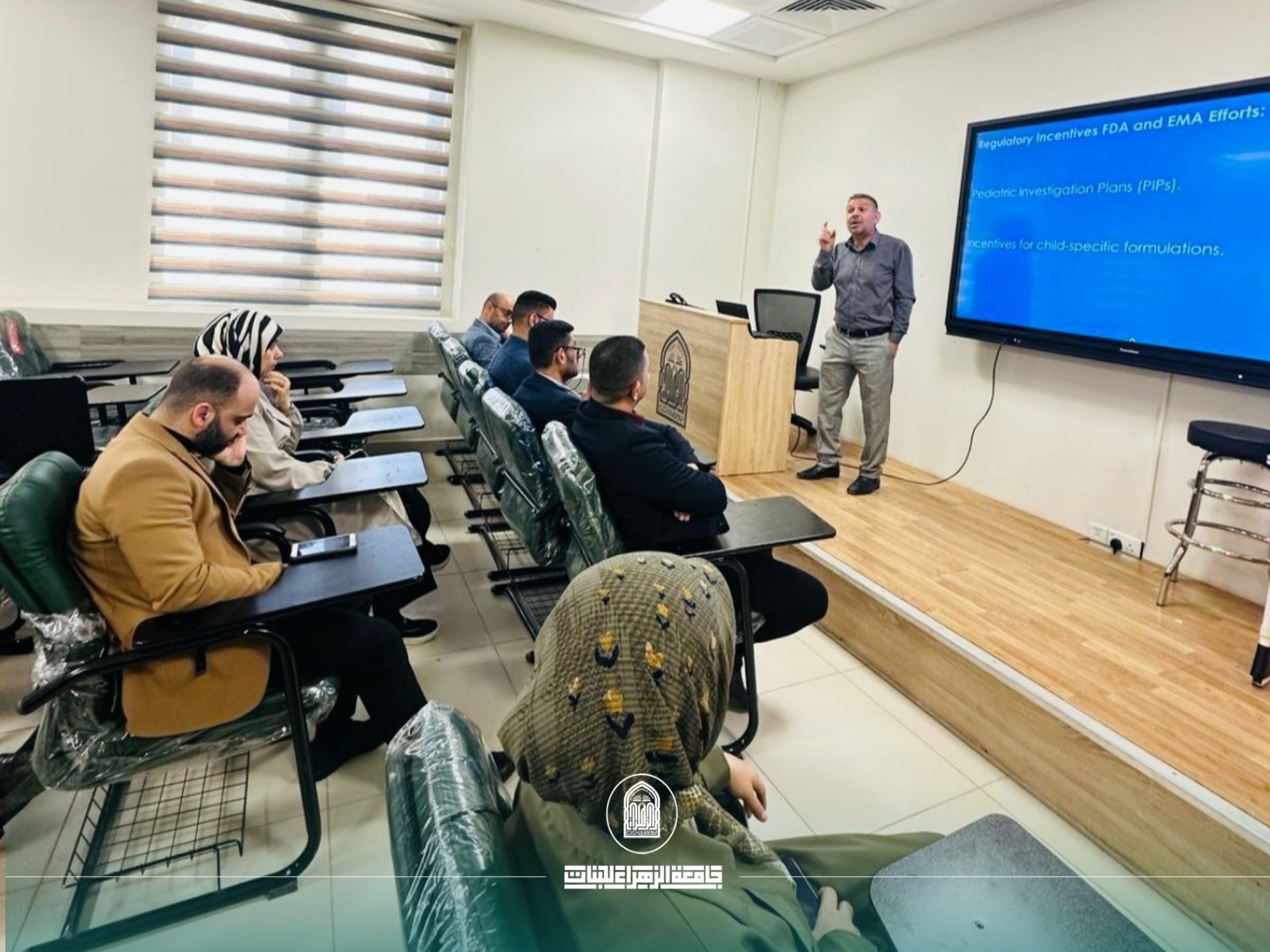 برعاية أ.د. زينب الملا السلطاني، رئيسة جامعة الزهراء (ع) للبنات، وإشراف عميد كلية الصيدلة أ.د. نور الدباغ، نظّمت كلية الصيدلة بالتعاون مع مركز التعليم المستمر وشعبة التأهيل والتوظيف ورشة علمية توعوية بعنوان "الأشكال الصيدلانية المستخدمة للأطفال: التحديات والتطورات الحديثة".   قدّم الورشة م.م. وسام غازي سند، التدريسي في كلية الصيدلة، حيث استعرض أبرز التحديات التي تواجه استخدام الأدوية الخاصة بالأطفال، بالإضافة إلى التطورات الحديثة والآفاق المستقبلية في هذا المجال.