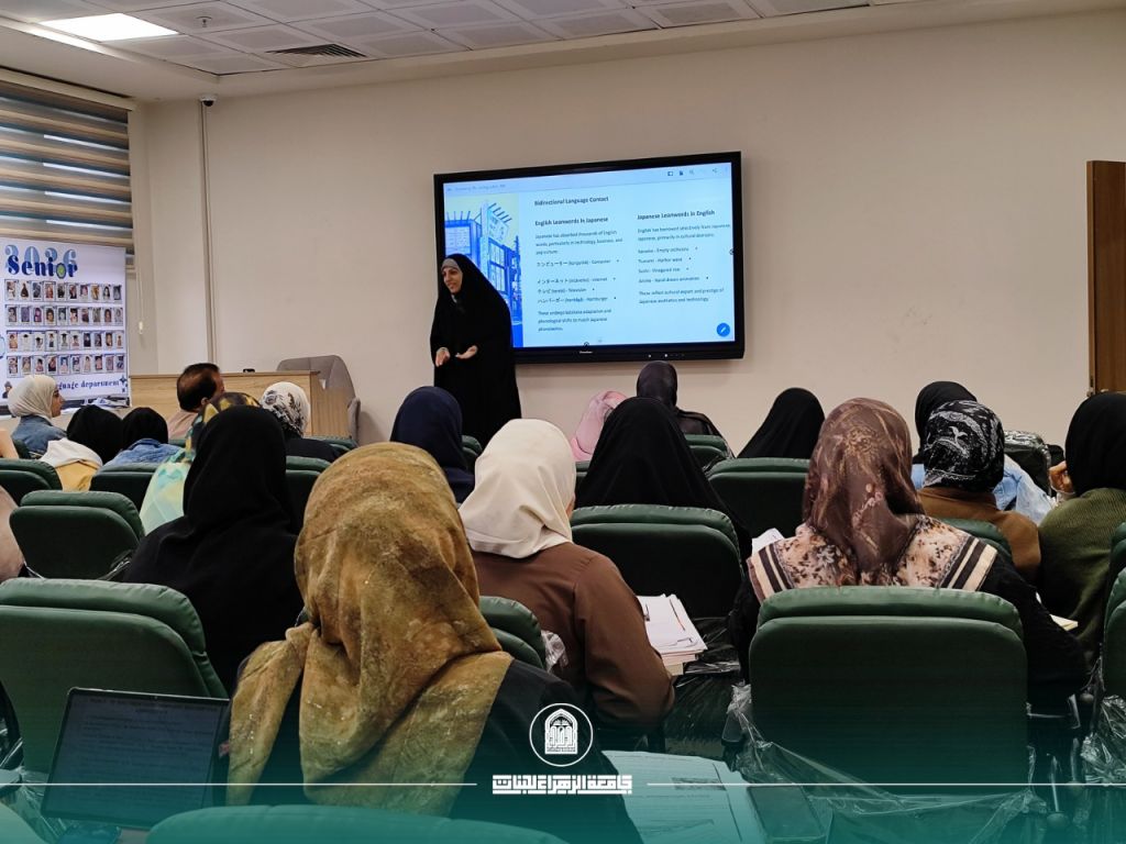 برعاية السيدة رئيسة جامعة الزهراء عليها السلام للبنات أ.د. زينب السلطاني وبإشراف السيدة عميدة كلية التربية أ.د. إيمان سمير بهية، أقام قسم اللغة الإنجليزية في كلية التربية، وبالتعاون مع مركز التعليم المستمر، دورة تدريبية بعنوان "نهج الاقتراض في اللسانيات والعلوم الأخرى".