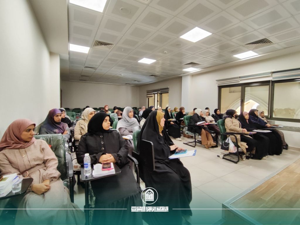 برعاية السيدة رئيسة جامعة الزهراء (ع) للبنات، أ.د. زينب السلطاني، وبإشراف السيدة عميدة كلية التربية، أ.د. ايمان سمير بهية، أقامت كلية التربية/ قسم اللغة العربية ورشة علمية موسومة «ثالوث الحصانة: العفّة والحياء والحجاب»، قدّمتها د. خلود حميد أحمد، وذلك في قاعة الصيدلة.