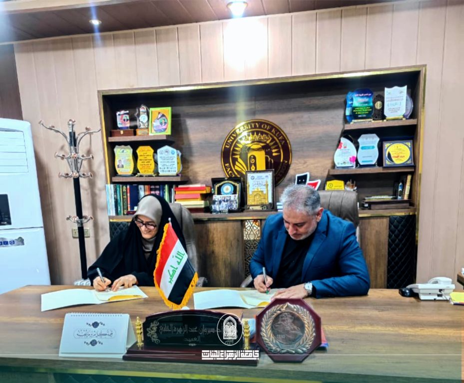 في إطار تعزيز التعاون العلمي والانفتاح الأكاديمي بين الجامعات العراقية، أبرمت كلية التربية في جامعة الزهراء (عليها السلام) للبنات اتفاقية توأمة علمية مع كلية التربية في جامعة الكوفة، وذلك بين قسم علوم نهج البلاغة والتربية الإسلامية ونظيره قسم علوم القرآن والتربية الإسلامية.