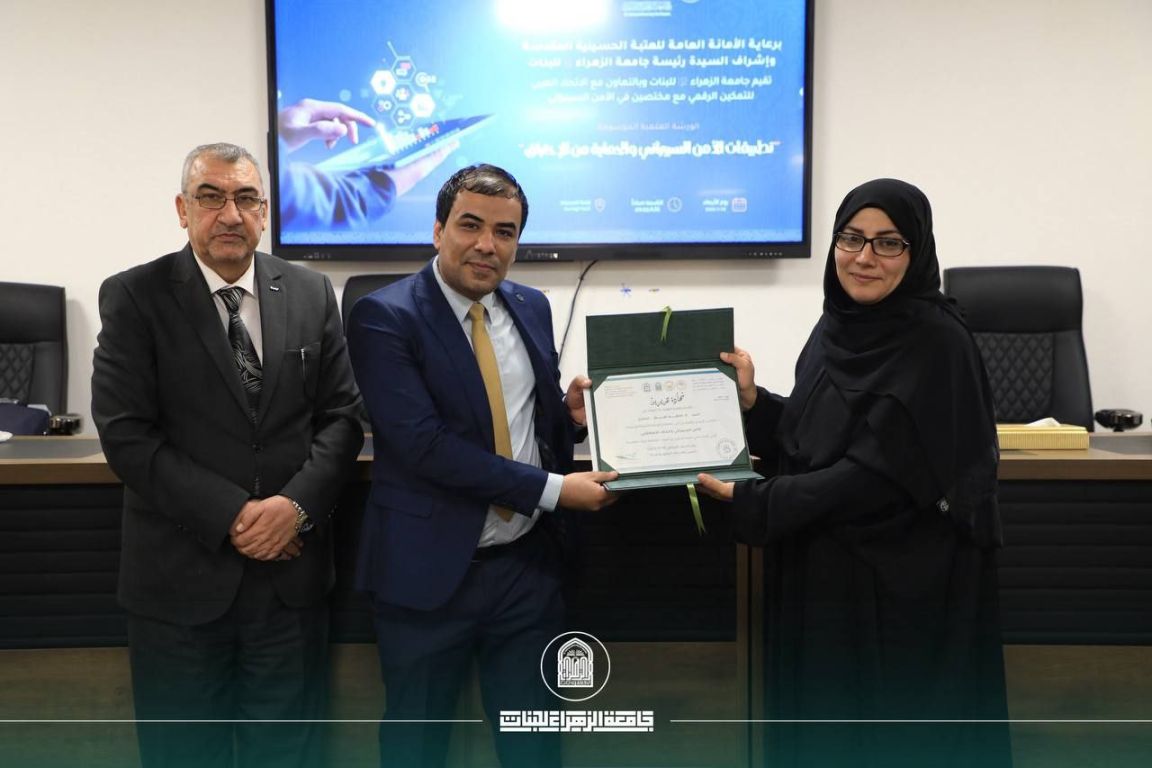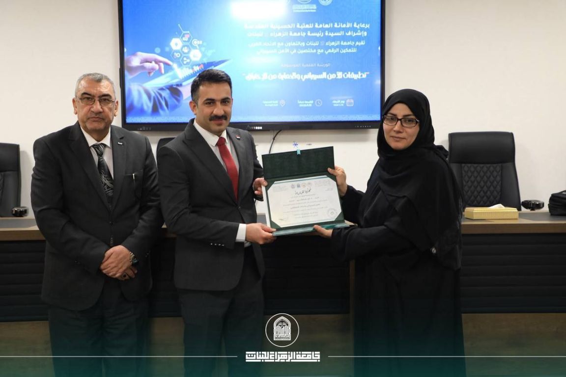 برعاية الأمانة العامة للعتبة الحسينية المقدسة، وبإشراف السيدة رئيسة جامعة الزهراء (ع) للبنات، أ.د. زينب السلطاني، ومتابعة السيدة عميدة كلية الهندسة وتكنولوجيا المعلومات أ.د. غيداء الملّا، احتضنت قاعة الصديقة ورشة علمية متخصصة بعنوان “تطبيقات الأمن السيبراني والحماية من الاختراق”، وذلك ضمن أولى ثمار مذكرة التفاهم المبرمة بين الجامعة والاتحاد العربي للتمكين الرقمي في العراق، في خطوة تعكس توجه الجامعة نحو بناء بيئة أكاديمية رقمية فاعلة وتفعيل مسارات التحول الرقمي في التعليم العالي، بحضور الكوادر التدريسية والإدارية وجمع من الطالبات.
