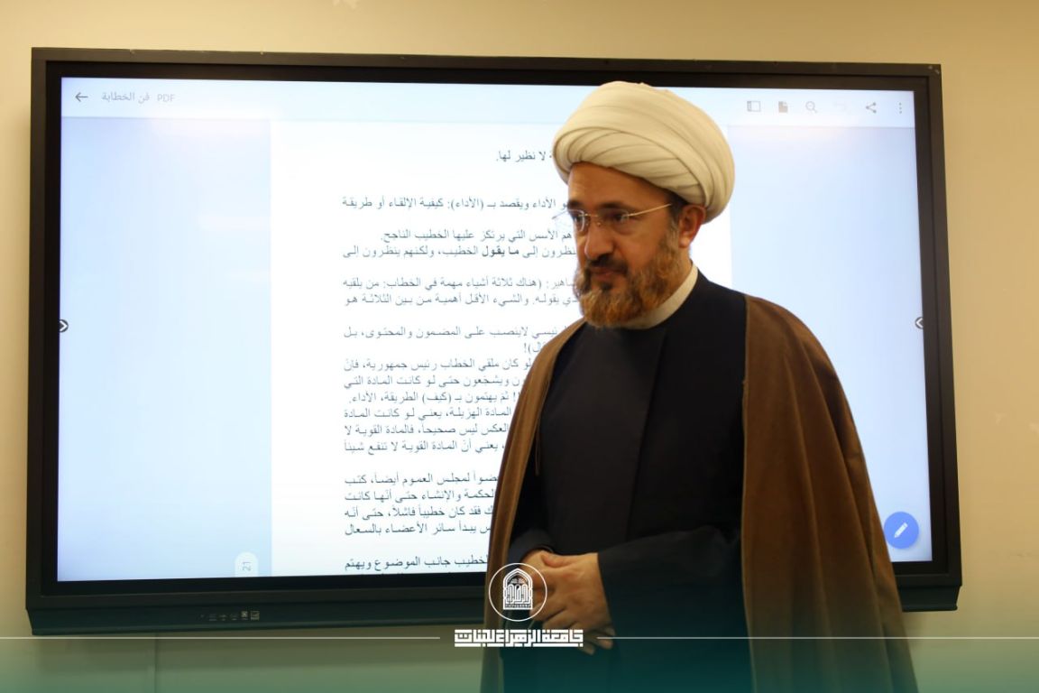 برعاية السيدة رئيسة جامعة الزهراء (ع) للبنات، أ.د زينب السلطاني، واشراف السيدة عميدة كلية التربية، أ.د. ايمان سمير بهية، أقامت كلية التربية - قسم اللغة العربية، بالتعاون مع مركز التعليم المستمر، دورة تدريبية استمرت ثلاثة أيام بعنوان "فن الخطابة"، قدمها سماحة الشيخ م.د. حسين النصراوي، استهدفت طالبات الكلية بهدف تطوير مهاراتهن التواصلية وتعزيز قدراتهن في الإلقاء والتأثير.