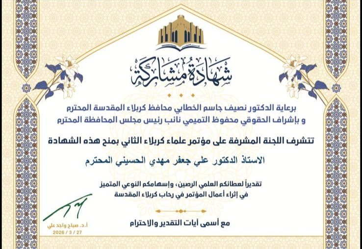 شهد مؤتمر علماء كربلاء الثاني، مشاركة السيد مدير قسم الشؤون العلمية في جامعة الزهراء (ع) للبنات، أ. د. علي الحسيني، في دراسة متخصصة بعنوان “تعظيم الإيرادات في مدينة كربلاء المقدسة: تحليل قانوني-اقتصادي ونموذج تقديري لتقليل الضائعات الكهربائية الإدارية”.