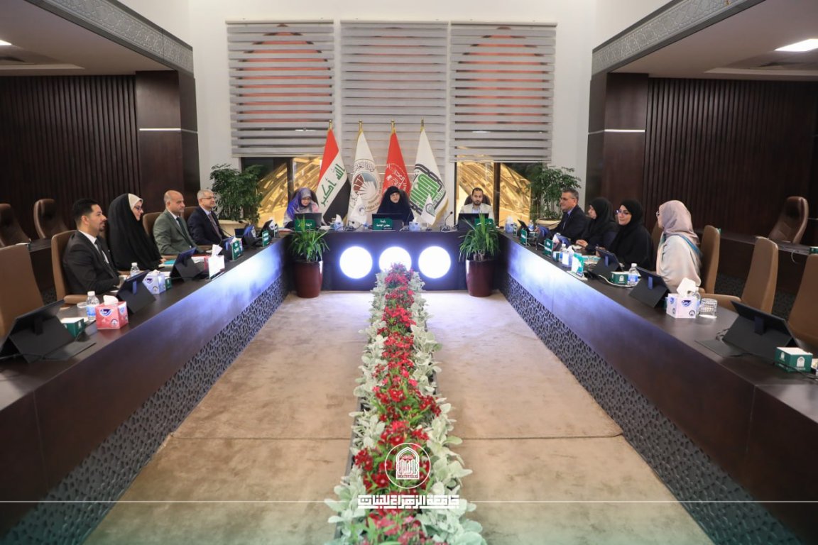 عقد مجلس جامعة الزهراء (ع) للبنات، اجتماعه الدوري برئاسة السيدة رئيسة الجامعة أ. د. زينب الملا السلطاني، وبحضور السادة أعضاء المجلس والملاك المتقدم، لمناقشة عدد من الملفات الاستراتيجية المرتبطة بتطوير المسيرة الأكاديمية وتعزيز جودة التعليم في الجامعة.