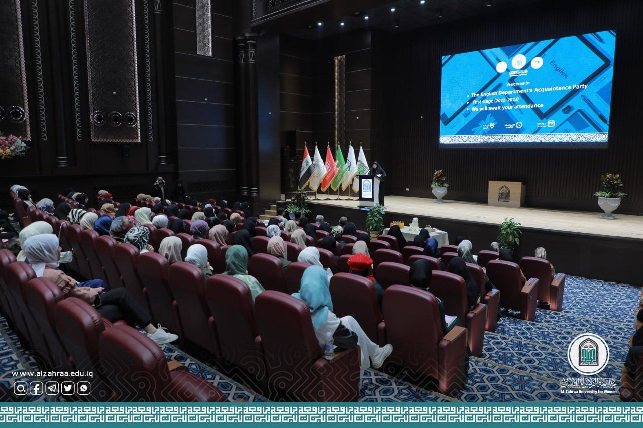 ترحيبًا بالطالبات الجديدات وتعزيزًا للتواصل بينهم أقامت كلية التربية/ قسم اللغة الإنكليزية في جامعة الزهراء (عليها السلام) للبنات بالتعاون مع قسم النشاطات الطلابية حفلَ تعارف للعام الدراسي 2022_2023، يوم الأحد الموافق 22/1/2023، في تمام الساعة العاشرة صباحاً، على قاعة أم أبيها.