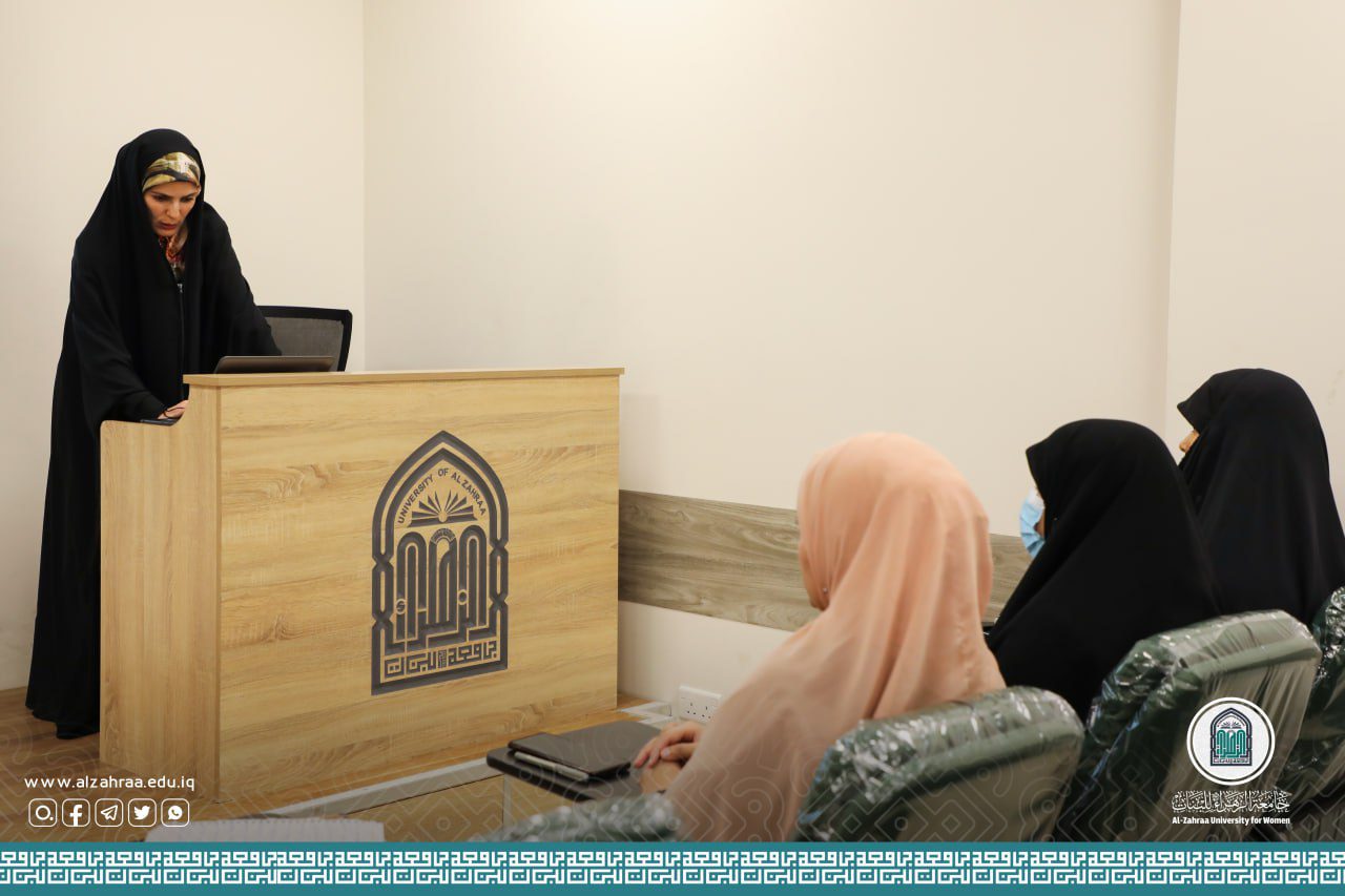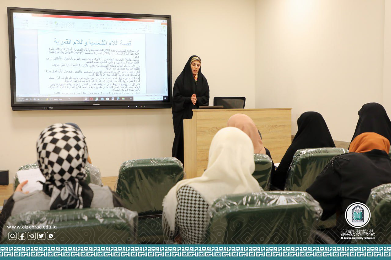 أقام قسم اللغة العربية/ كلية التربية في جامعة الزهراء (عليها السلام) للبنات ورشة علمية بعنوان: (القواعد الإملائية وعلامات الترقيم)، قدمتها التدريسيةُ م. د. نبأ سعيد عبد، في إحدى قاعات القسم، إذ حضر الورشة طالبات قسم اللغة.