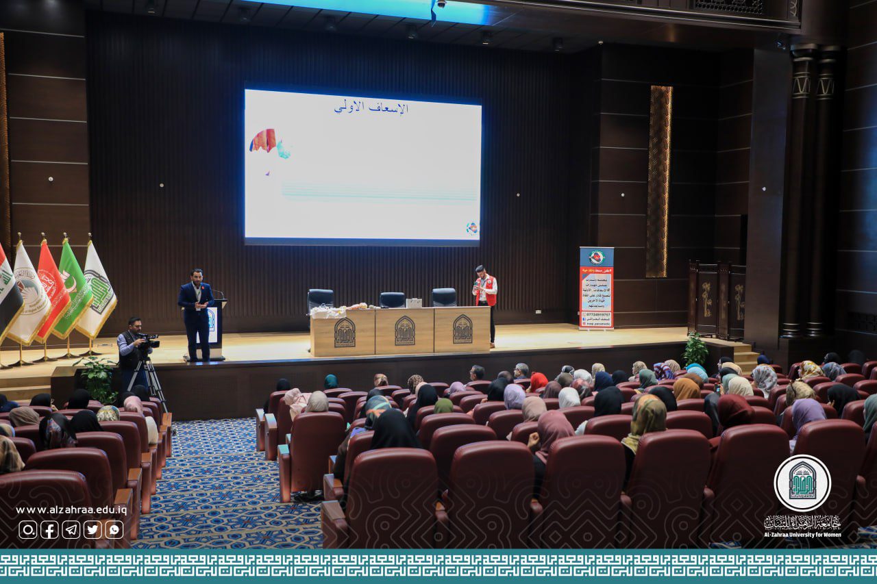 الإسعافات الأولية: ورشة علمية يقيمها قسم الأشعةحرصاً من رئاسة جامعة الزهراء (عليها السلام) للبنات على توعية الطالبات ورفدهم بالمعلومات الأساسية المتعلقة بالرعاية الطبية للحالات الطارئة، أقامت كلية التقنيات الصحية والطبية/ قسم تقنيات الأشعة ورشة علمية بعنوان (الإسعافات الأولية) قدمها المدرب الدولي: مرتضى الغالبي مع فريق المسعف العراقي، يوم الثلاثاء الموافق 9/5/2023، على قاعة أم أبيها.