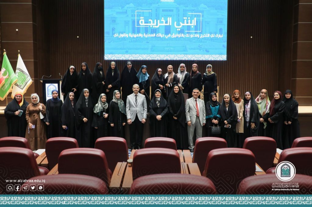 حيث إلتقت رئيسة الجامعة أ.د.زينب الملا السلطاني و أ.د.زهير محمد علي الأسدي مساعد رئيسة الجامعة للشؤون العلمية والسادة عمداء الكليات بالطالبات الخرّيجات في قاعة أم أبيها، وبحضور جمع من الكوادر التدريسية والإدارية مما يعكس مدى قوة العلاقة التي نشأت بين الطالبات ورئاسة الجامعة وكوادرها على مدار أربع سنوات من الدراسة.