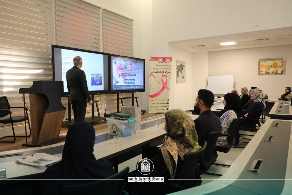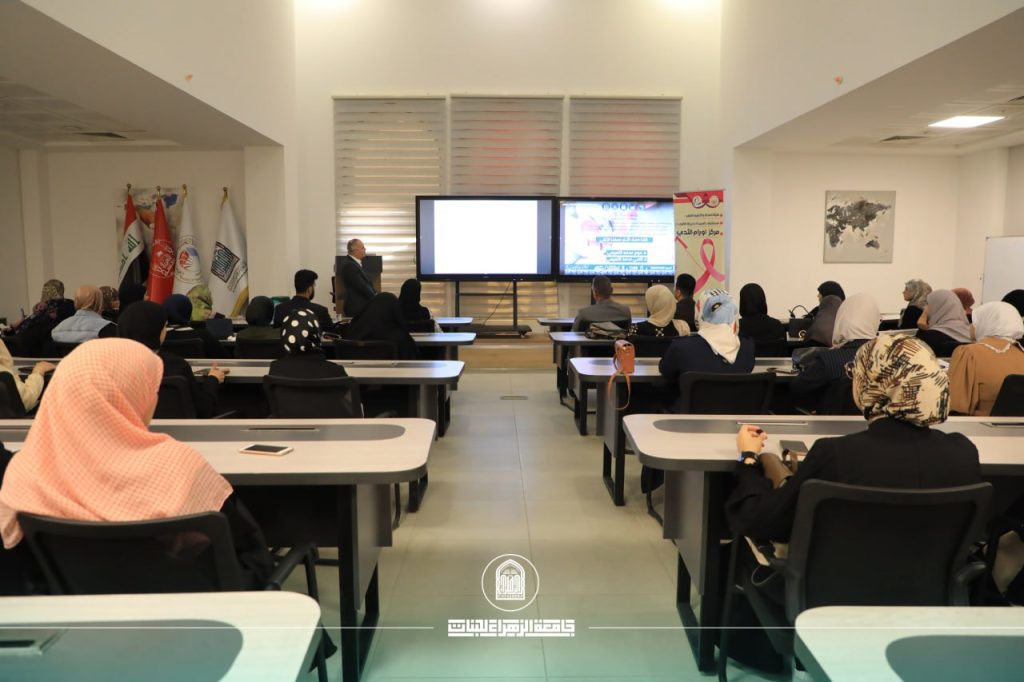 برعاية السيدة رئيسة جامعة الزهراء أ. د زينب السلطاني، أقام قسم شؤون المرأة في جامعة الزهراء (عليها السلام) للبنات وبالتعاون مع كلية التقنيات الصحية والطبية ندوة تحت شعار "كلنا معكِ لأنكِ نصفنا الثاني" للتوعية بمخاطر السرطان وطرق تشخصيه وخطوات الوقاية منه على قاعة الكوثر للتعليم المستمر.
