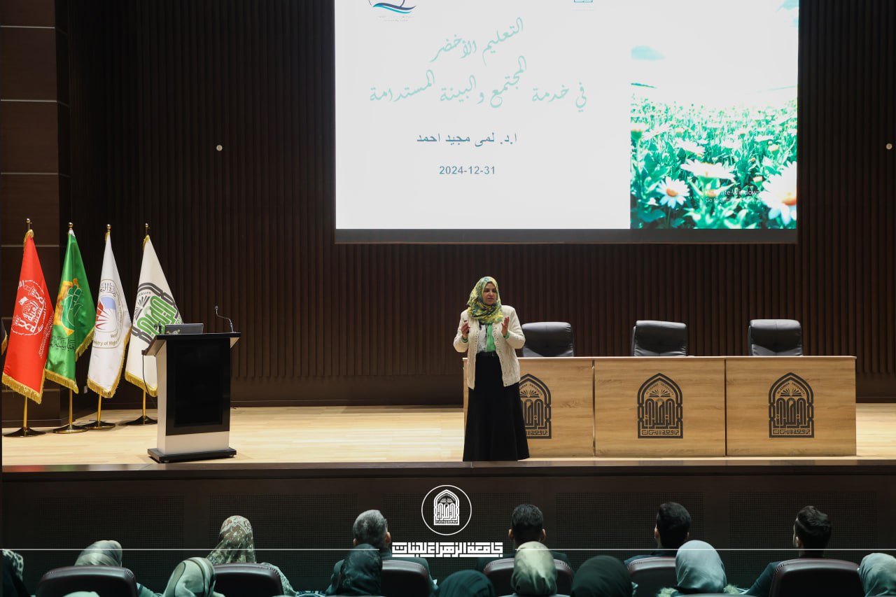 Under the aegis of Imam Hussein Holy Shrine along with the supervision of Prof. Dr. Zainab Al-Sultani, President of Al-Zahraa University, Al-Zahraa Centre for Medical and Pharmaceutical Sciences held a scientific seminar entitled "Green Chemistry for a Sustainable Environment". The seminar which was presented by Prof. Dr. Lama Majeed Ahmed, provided an introduction to green chemistry and the increasing efforts to develop and implement sustainability principles aimed at a balance between economic, environmental, as well as social dimensions. Furthermore, this approach seeks to meet present needs without compromising the ability of future generations to fulfill theirs, while improving manufacturing processes and reducing harmful environmental impacts via more sustainable processes and products. Moreover, social responsibility is a core principle upheld and enhanced by Al-Zahraa University for Women, through a variety of scientific and academic programs so as to bring about an environment that ensures a sustainable future for posterity.