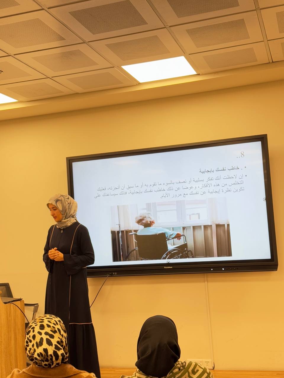 The seminar which was conducted under the aegis of Prof. Dr. Zainab Al-Sultani, President of the University, was presented by Ms. Amina Hassan Ali. The seminar focused on three main topics, namely: definition of negative thoughts and their infiltration ways to the mind, their impact on individuals in addition to strategies for the management of such thoughts to prevent distraction and life progress.