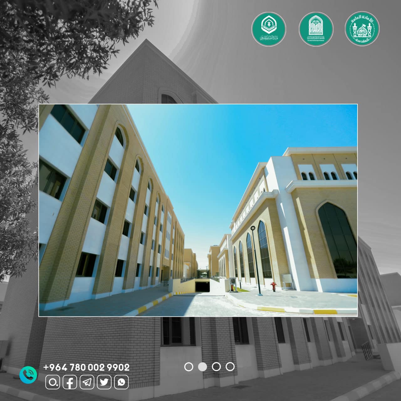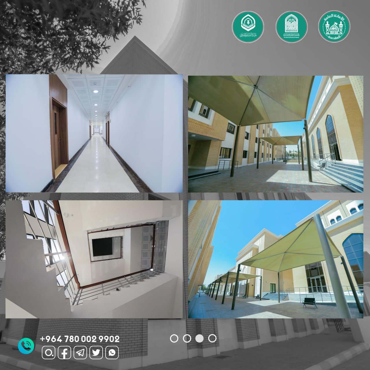 Al-Zahraa University's new premise has three large glass ceilings (skylights) that provide natural lighting for the internal assembly courtyards.