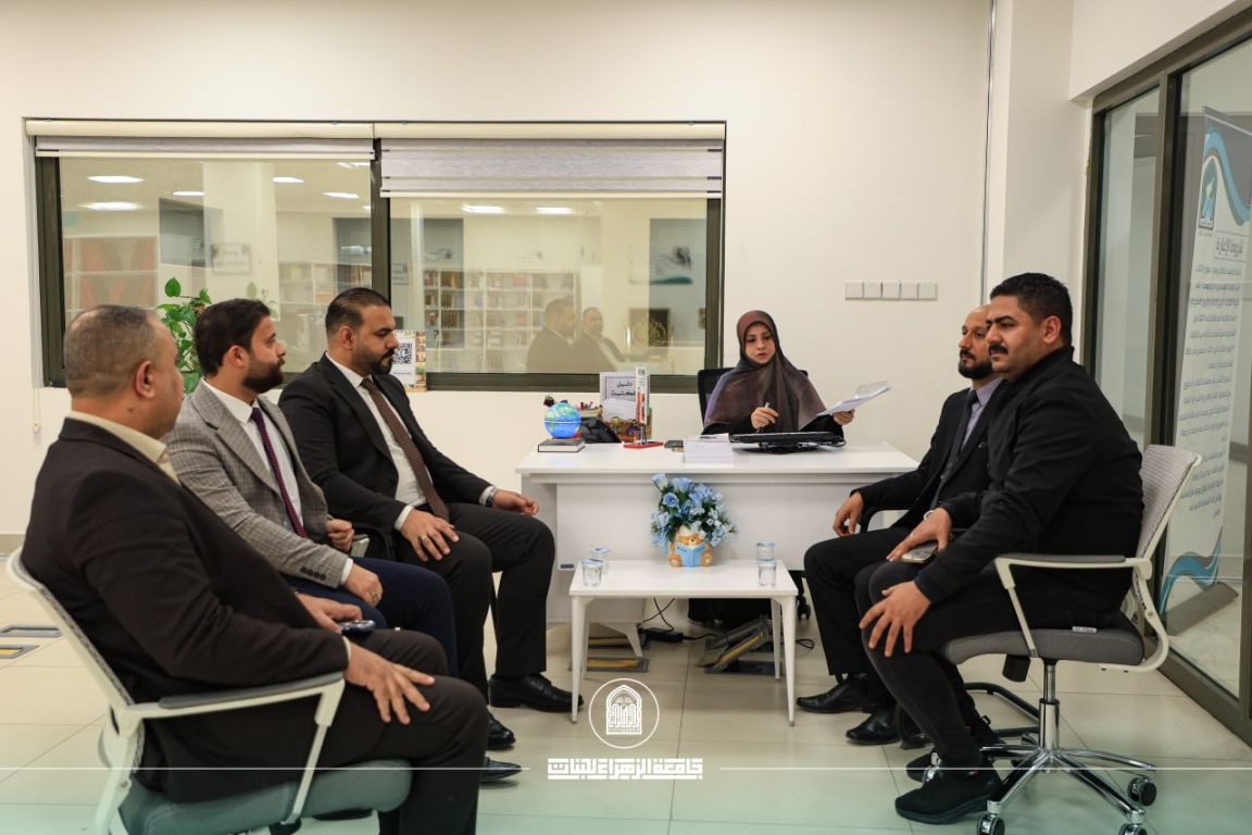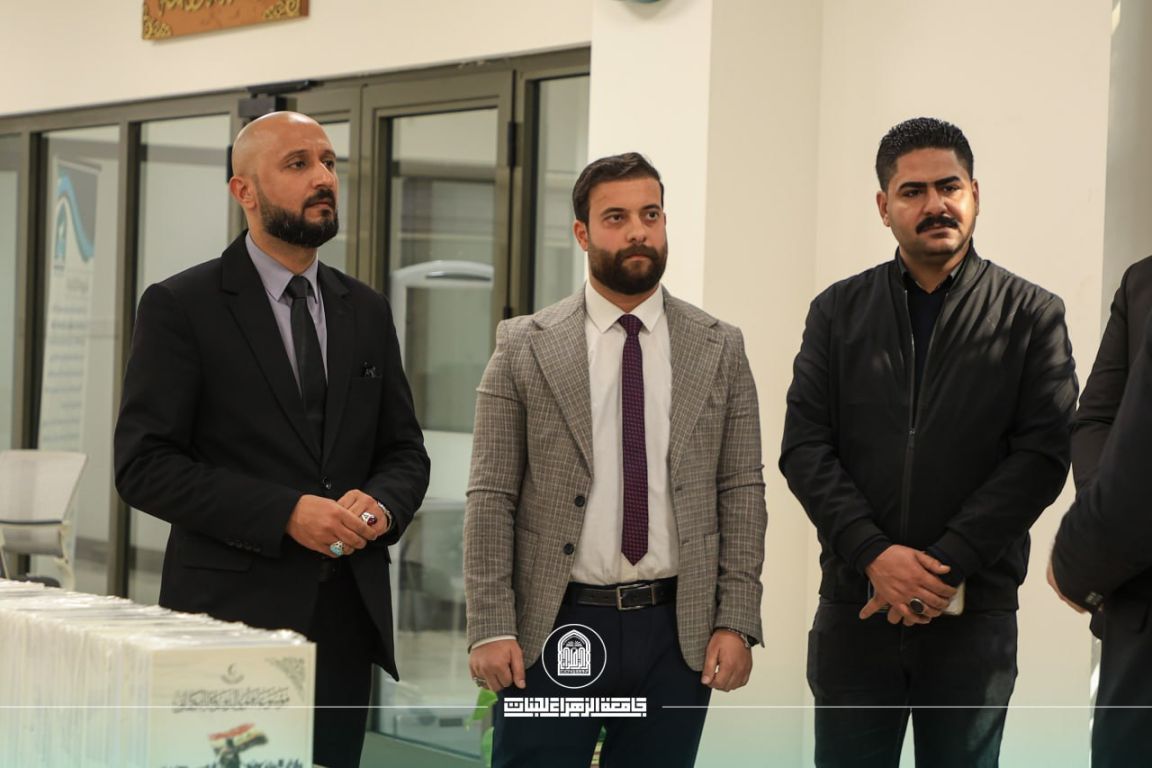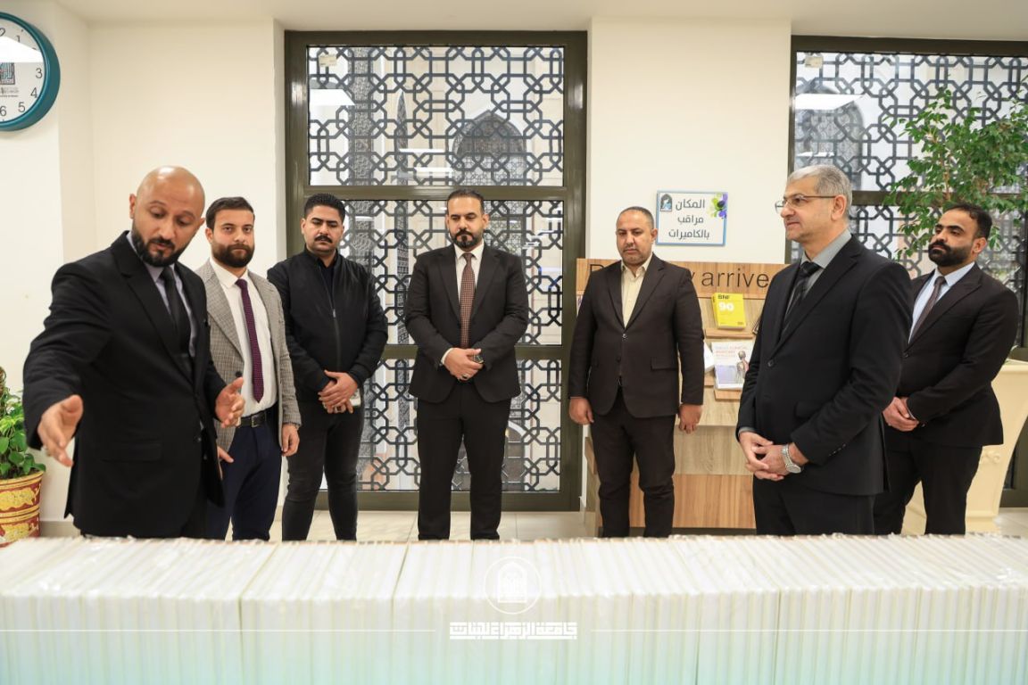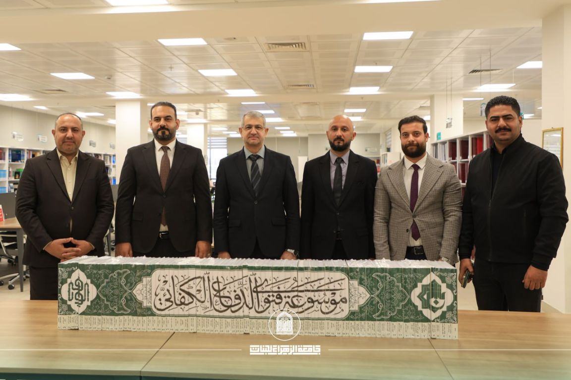The Central Library of Al-Zahraa University (peace be upon her) for Women received a delegation from the Al-Abbas Holy Shrine, represented by Al-Wafi Foundation / Documentation Department, which presented the “Encyclopedia of the Fatwa of Defense” as a scholarly gift to the library, in support of its research mission and to enhance its documentary resources. The delegation was received by the Assistant President of the University for Scientific Affairs, Prof. Dr. Zuhair Mohammed Ali Jadoua, along with the administration of the Central Library.