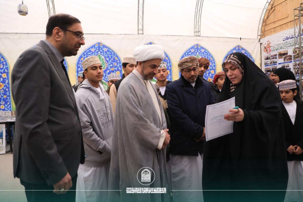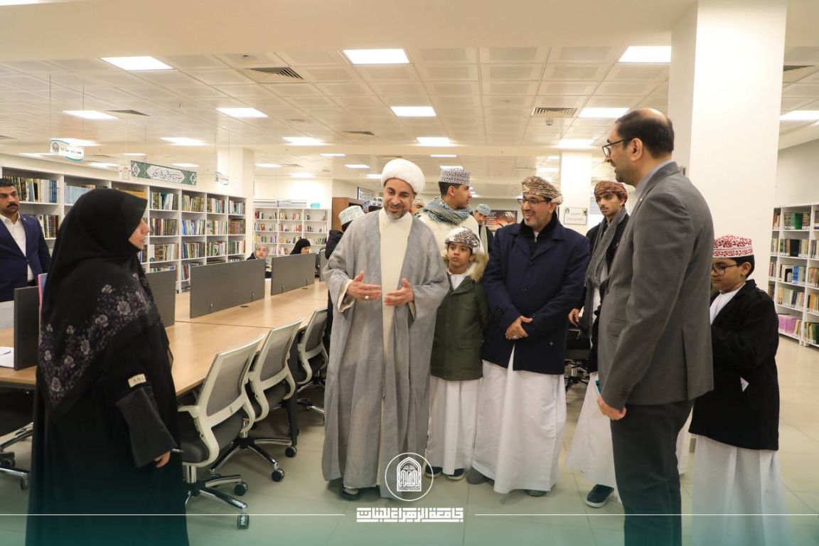 Al-Zahraa University received an official delegation from Dar Al-Qur’an in the Sultanate of Oman, headed by Sheikh Jaber Hussein Al-Omani. The delegation met with Prof. Dr. Zainab Al-Mulla Al-Sultani, the President of the University, along with the University’s Vice Presidents. The visit formed part of an exploratory tour aimed at familiarising the delegation with the University’s educational and research environment and its academic programmes.