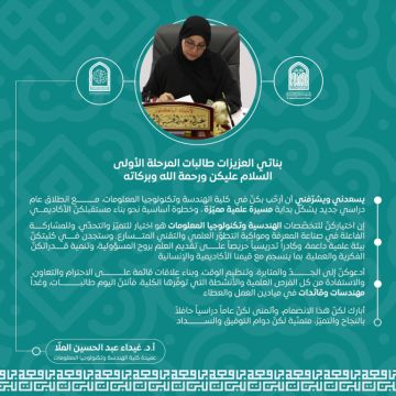 Welcoming First-Year Students for the Academic Year 2025-2026 Honoring the top female students in the college College editorial College News Department News Department News College News College News College News Division of Women's Affairs Department of Art Education Department of Special Education Department of Therapeutic Nutrition Communications and Mobile Computing Engineering Cybersecurity Engineering Artificial Intelligence Engineering Department of Radiologic Technology Physiotherapy Techniques Department Arabic Language Department English Language Department Mathematics Department Engineering and Information Technology Faculty Education Faculty Conferences Health and Medical Technologies Faculty Pharmacy Faculty Department of Quality Assurance Department for Diwan Affairs Department of Student Activities Department for Legal Affairs Electronic Computer Center Continuous Learning Center Media Department Department of Construction and Projects Department of Campus Dormitory Affairs Central Library Holy Shrine of Imam Hussain visits Training and Employment