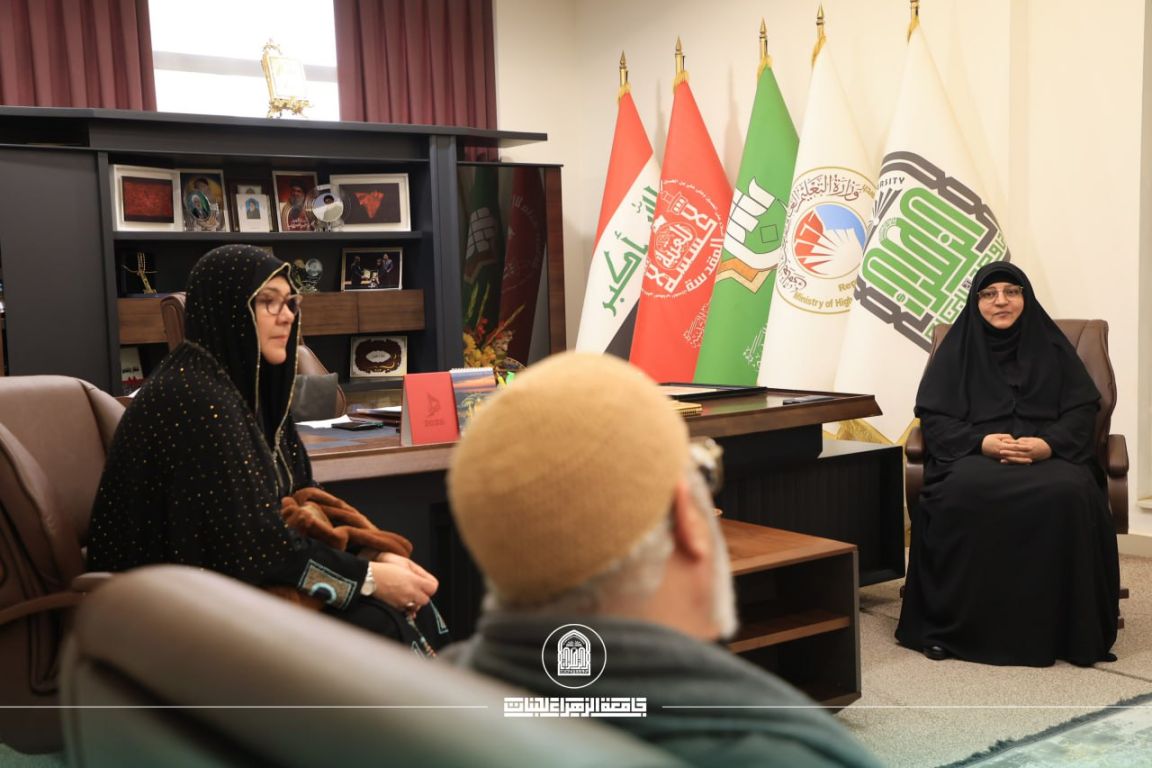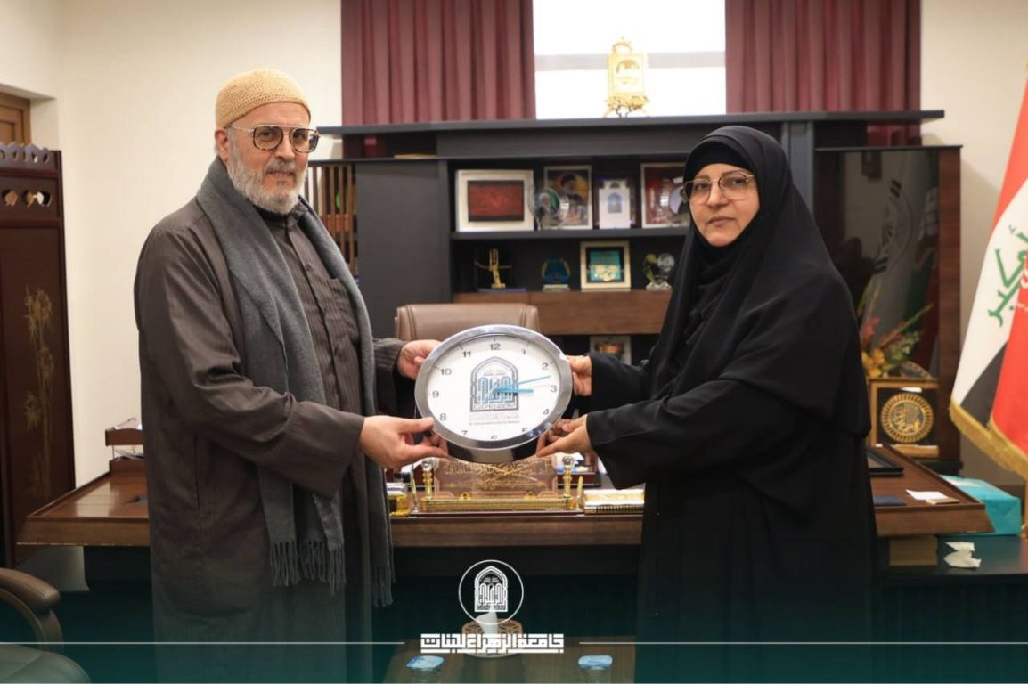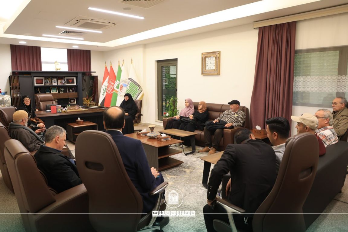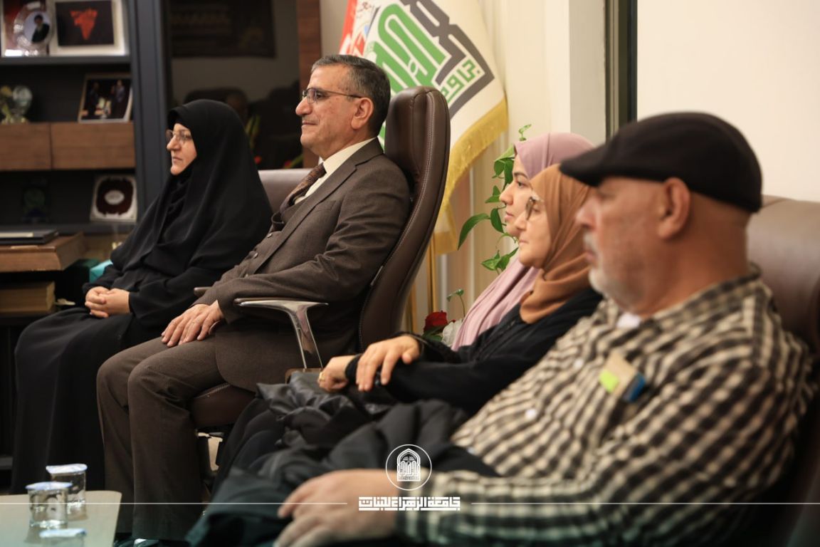 In pursuit of strengthening academic and scientific cooperation between Al-Zahraa University and international educational institutions, the University Presidency received an official delegation from the Republic of Tunisia, headed by Professor Habib Al-Fadhlawi, on a formal visit aimed at learning about the institutions of the Holy Shrine of Imam Hussein, and exploring future opportunities for cooperation in the educational, cultural, and research fields.