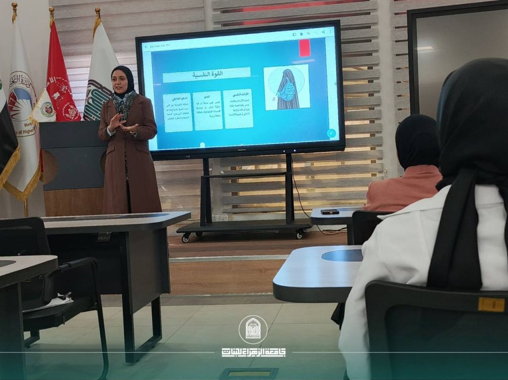 Under the auspices of the President of the University, Prof. Dr. Zainab Al-Mulla Al-Sultani, the Women’s Affairs Division, in cooperation with the Faculty of Pharmacy, organized a scientific lecture entitled “Inspiring Female Figures from the Arab World”, delivered by Asst. Lect. Mariam Khalil Ibrahim.