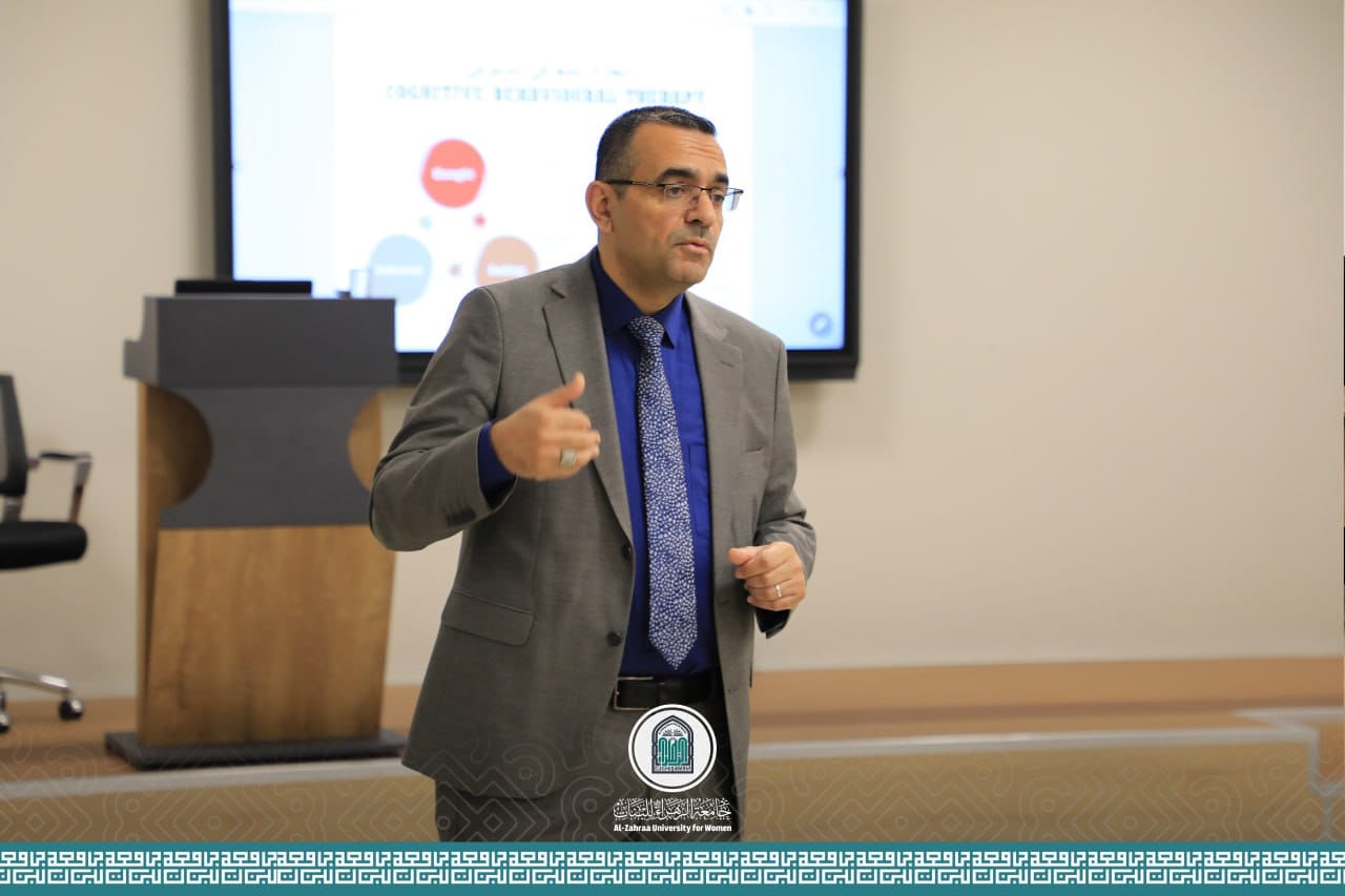 The Department of English Language / College of Education / Al-Zahra University (peace be upon her) for women, organized a course entitled (Anxiety disorders and their impact on our practical and academic lives) as a result of academic pressure or stress. The course lasted for three days and was hosted at Al-Kawthar Hall in the university premises.The first day of the course was initiated by Dr. Wafaa Abbas,who presented the theoretical aspect, in which she reviewed the concept of anxiety, its types, and its negative and positive impact on female students, and further discussed the practical measures to fight against it. On the second and third day of the specialized course Dr. Ali Latif Al-Sultani (a professional psychiatrist) presented the practical methods that could be beneficial for dealing with anxiety among the students through the various therapies available, most common among them being the cognitive behavioral therapy, eye movement and relaxation therapy, neurolinguistics programming and other available therapies for anxiety management. It is a huge initiative undertaken by the College of Education at Al-Zahra University (peace be upon her) to continue organizing courses in various fields, with the aim of uplifting the overall physical, mental and emotional well being of the female students while improving their scientific and intellectual level.