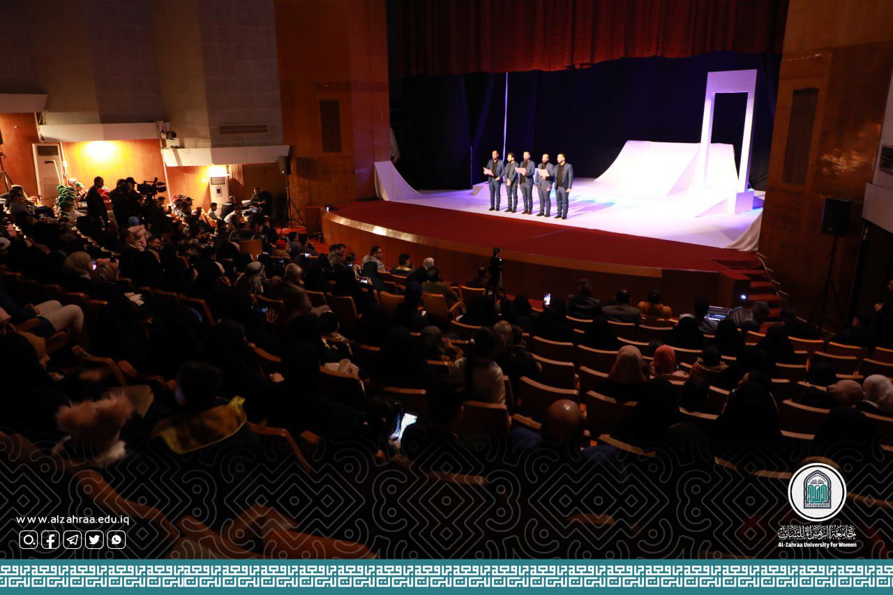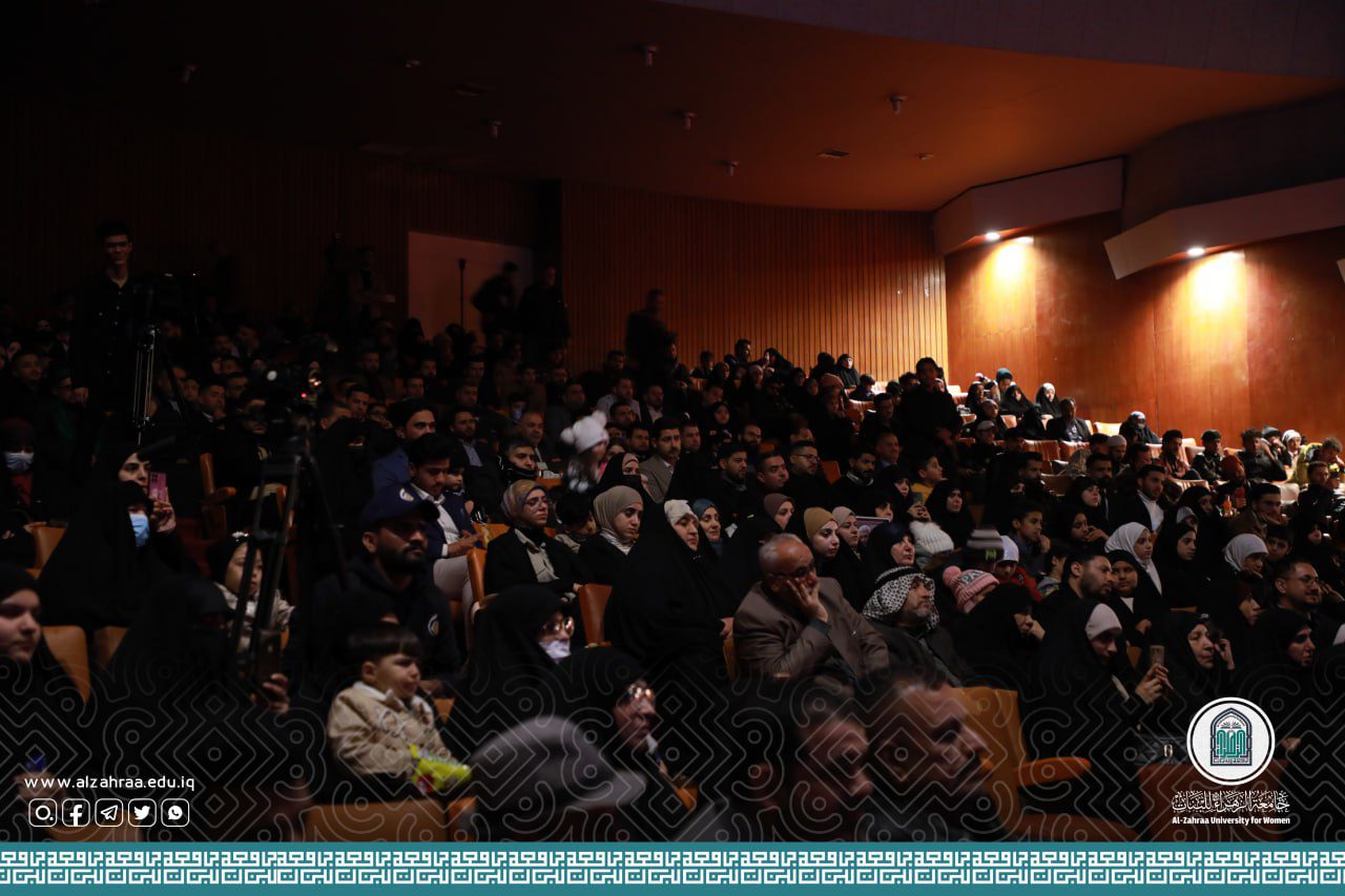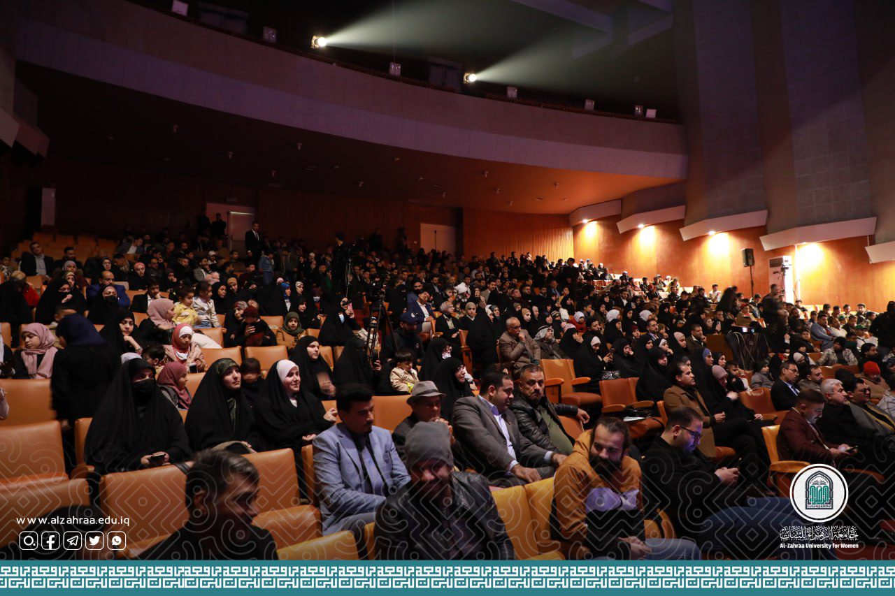 In order to support the cultural cooperation between Al-Zahra University (peace be upon her) for women and the departments of the Holy Shrine of Al-Hussainia,the Head of the Media Department (Dr. Marwa Al-Asadi) represents Al-Zahra University (peace be upon her), and attends the activities of the (Loyalty and devotion to Al-Imam-al- Hussein) Festival, which was held by the Youth Development and Social Rehabilitation Department of the Arts and Theater Division At the Holy Hussainiya Shrine, in the Cultural House Theatre, on Saturday corresponding to: 7/1/2023 at seven o’clock in the evening. The festival included many events, including: theatrical performances, narration of stories, a film exhibition, religious chantings etc. It is noteworthy that the festival was preceded by extensive preparations and planned meetings in order to create a distinguished event that communicates the essence of Karbala and spreads its message in an artistic and creative way.