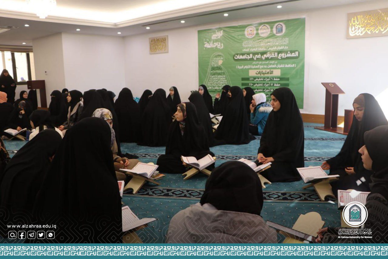 Under the auspices of Al-Zahra University (peace be upon her) for women, along with the cooperation from the House of the Noble Qur’an affiliated with the Holy Shrine of Al-Hussainia, the curriculum of the Qur’anic project was launched in universities. Privileges were allocated to memorizers of the Noble Qur’an in terms of providing them a heavy discount on their academic tuition fees according to the the number of the Juz (parts/parahs of the Quran) that are memorized by the students: