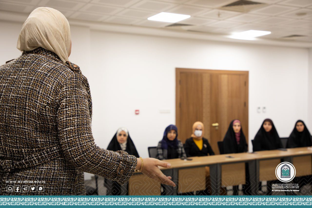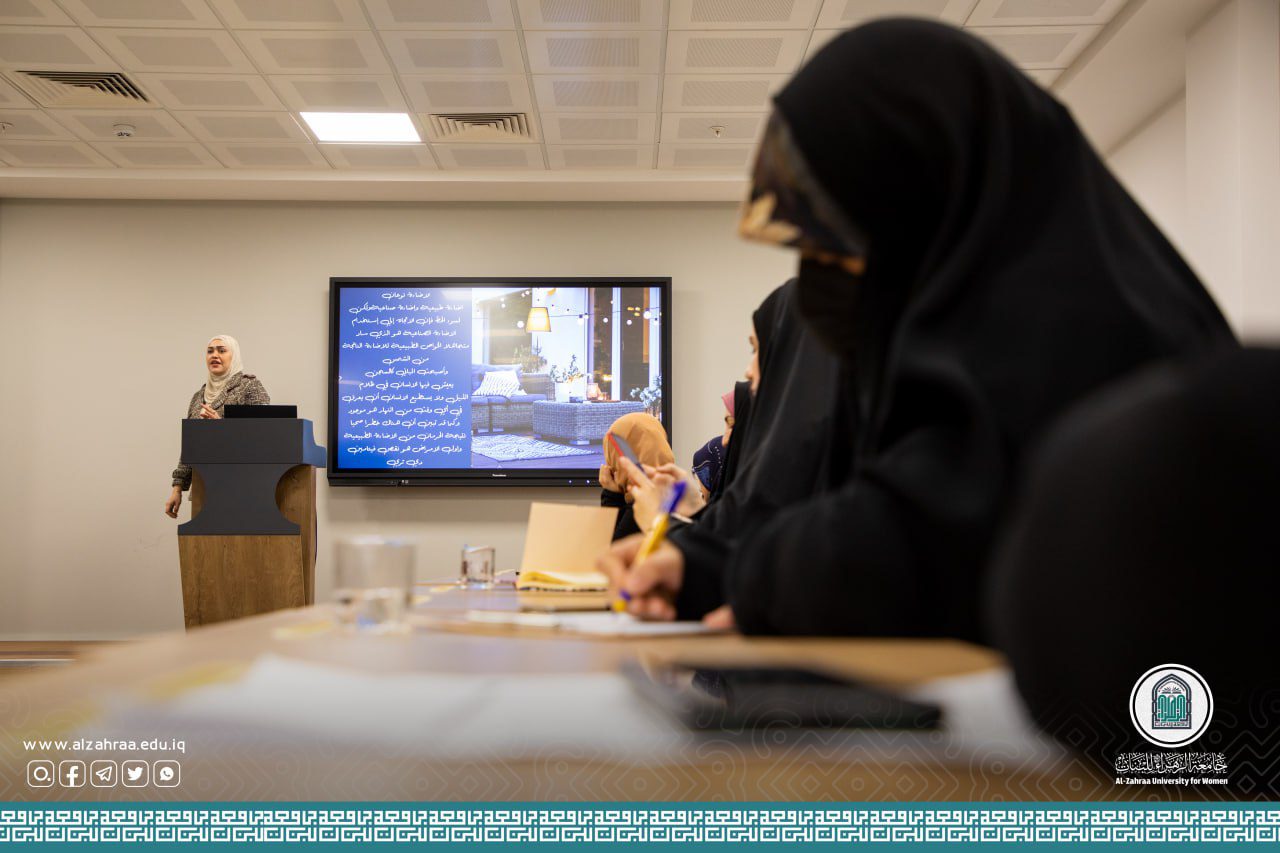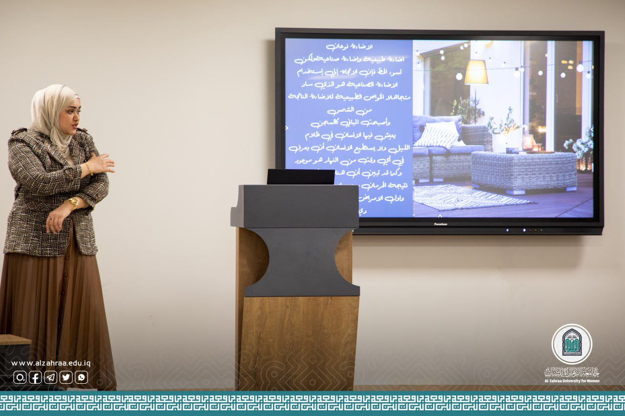The Department of Construction and Engineering Projects at Al-Zahra University (peace be upon her) for women, in cooperation with the Department of Continuing Education, held a scientific workshop entitled: (Interior Design, Modern Lighting Methods and Light Distribution in Buildings), presented by Engineer: Amira Abbas Al-Amiri, on Saturday 1/28/2023. At 12:30, at Al-Kawthar Hall for Continuing Education.