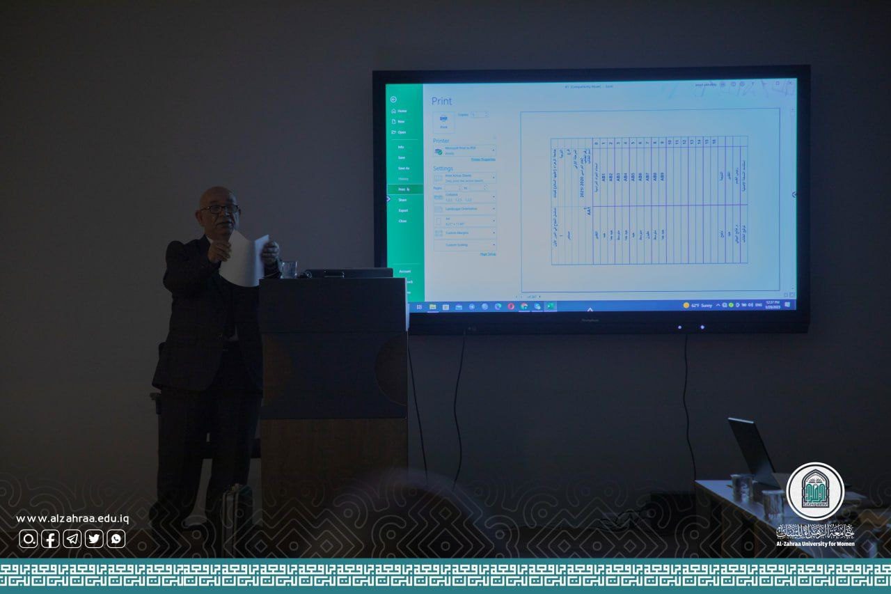The Department of Continuing Education at Al-Zahra University (peace be upon her) for women organizes a special scientific workshop entitled: (Management of the Electronic System for University Examinations), presented by: Prof. Awad Kazem Al-Khalidi / Dean of the College of Administration and Economics at Warith Al-Anbiya University (peace be upon him), on Sunday (1/29/2023, at 12:00 noon), at Al-Kawthar Center for Continuing Education.