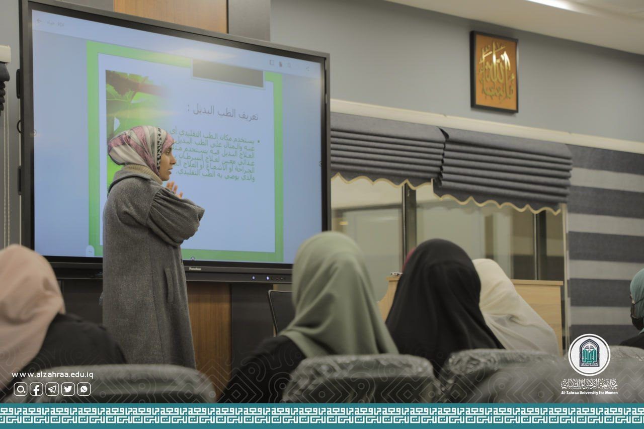 The College of Health and Medical Technologies / Department of Radiology Technologies at Al-Zahra University (peace be upon her) held a scientific course entitled: (Using Alternative Medicine for a Healthy Lifestyle), presented by the ladies: Asst.Lecturer Afrah Kamel Zabeel and Asst.Lecturer Asmaar Aqeel Husain for three consecutive days at the hall for the Department of Radiology Technologies.