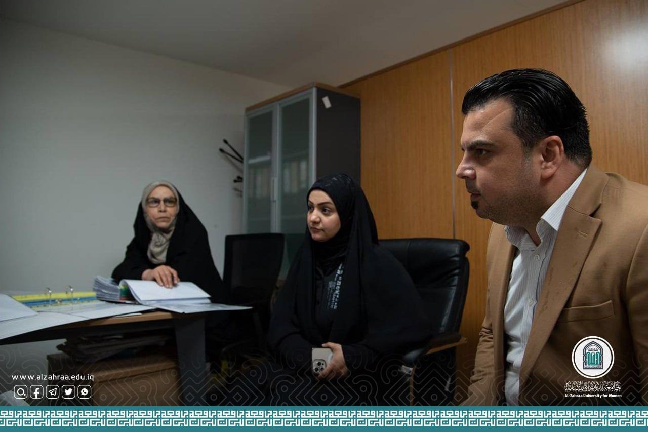 A delegation from the Legal Consultative Center which is related to Authority of Health and University Education visited Al-Zahraa University (peace be upon her) for Women. The delegation was headed by: Prof. Jaber Muhanna Shebl, accompanied by a group of professors of College of Law at Warth AL-Anbiaa University (peace be upon him). They were received by Ms. Nadia Al-Sultani, Head of the Legal Affairs Department. The visit included discussion and dialogue about direct the tasks of the Consulting Center and providing legal advice to the institutions of the Health and University Education Authority, as well as checking the legal contracts between the university and all its workers, including teaching and administrative staff. The visit also included standardizing legal contracts between institutions of Health and University Education Authority and its employers to ensure the rights of all parties. It also included following up the progress of work in the Legal Division by discussing disciplinary measures and investigative issues in accordance with instructions of the Ministry of Higher Education and Scientific Research, and view the archive of transactions. At the end of the visit, the delegation praised the work of the department and the efforts made in it.