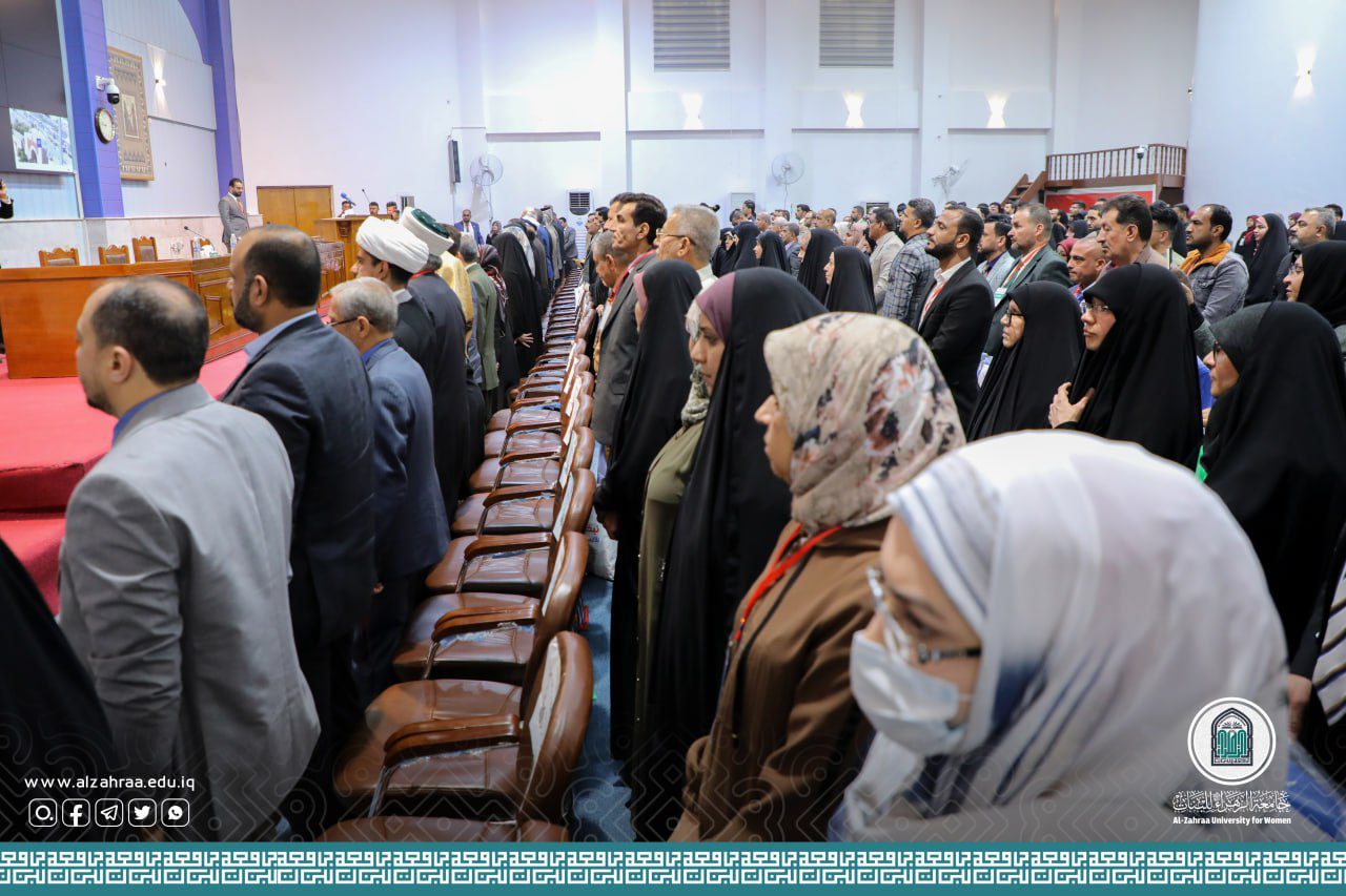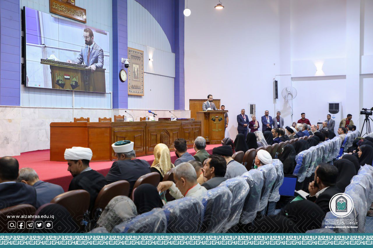 Based on the directives of the Holy Hussainiya Shrine and Al-Zahraa University (peace be upon her) for Women regarding the importance of participation and attendance in intellectual and religious programs and activities because of its educational and scientific impact. The President of Al-Zahraa University for Women attended: Prof. Dr. Zainab Al-Mulla Al-Sultani, at the Sixth Scientific Conference of Al-Zahraa held in the College of Islamic Sciences / Karbala University, under the slogan: (Al-Zahraa a message of glue and Kawthar of a giver), and under the title: (The role of the media in spreading Islamic culture and true beliefs) On Wednesday corresponding to , 3/15/2023.