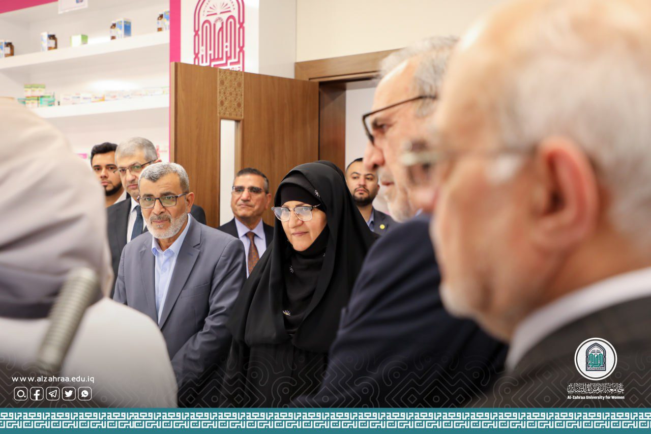 They were received at Al-Zahraa University for Women, the President of the University: Prof. Dr. Zainab Al-Mulla Al-Sultani , Vice President for Scientific Affairs: Prof. Dr. Zuhair Muhammad Ali Al-Asadi , Vice President for Administrative and Financial Affairs: Prof.Dr. Hamid Ibrahim Al-Tamimi, Dean of the College of Pharmacy: Prof. Dr. Noor Hatif Hussein, Assistant Dean for Administrative Affairs of the College of Pharmacy: Dr. Aziz Hussein, Assistant Dean for Scientific Affairs of the College of Pharmacy: Dr. Ghufran Muhammad, Dean of the College of Health and Medical Technologies: Dr. Hassan Hadi Al-Qazzaz, Dean of the College of Education: Prof. Dr. Iman Samir Bahia, Head of the Radiology and Ultrasound Department: Dr. Sadiq Halim Al-Morshedi, and the Director of Electronic Calculator: Dr. Muhammad Abu Al-Maali.
