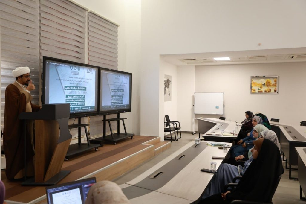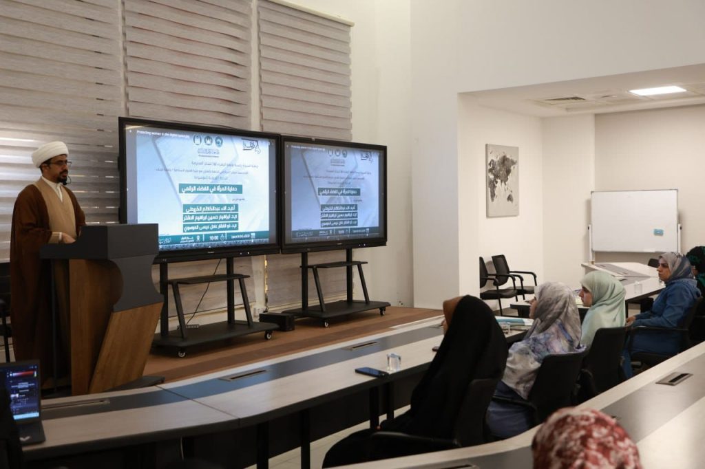 Women’s affairs Division at Al-Zahraa University for Women, in cooperation with the Faculty of Islamic Sciences at the University of Kerbala, held an awareness seminar entitled “The image of women in the digital space” presented by Asst. Prof. Alaa Abdel Kazim Jabbar, Dr. Ibrahim Hussein Ibrahim Al Ashtar, and Dr. Zulfikar Adel Issa, on Tuesday, 24/9/2024, at Al-Kawthar Hall for Continuous Education.
