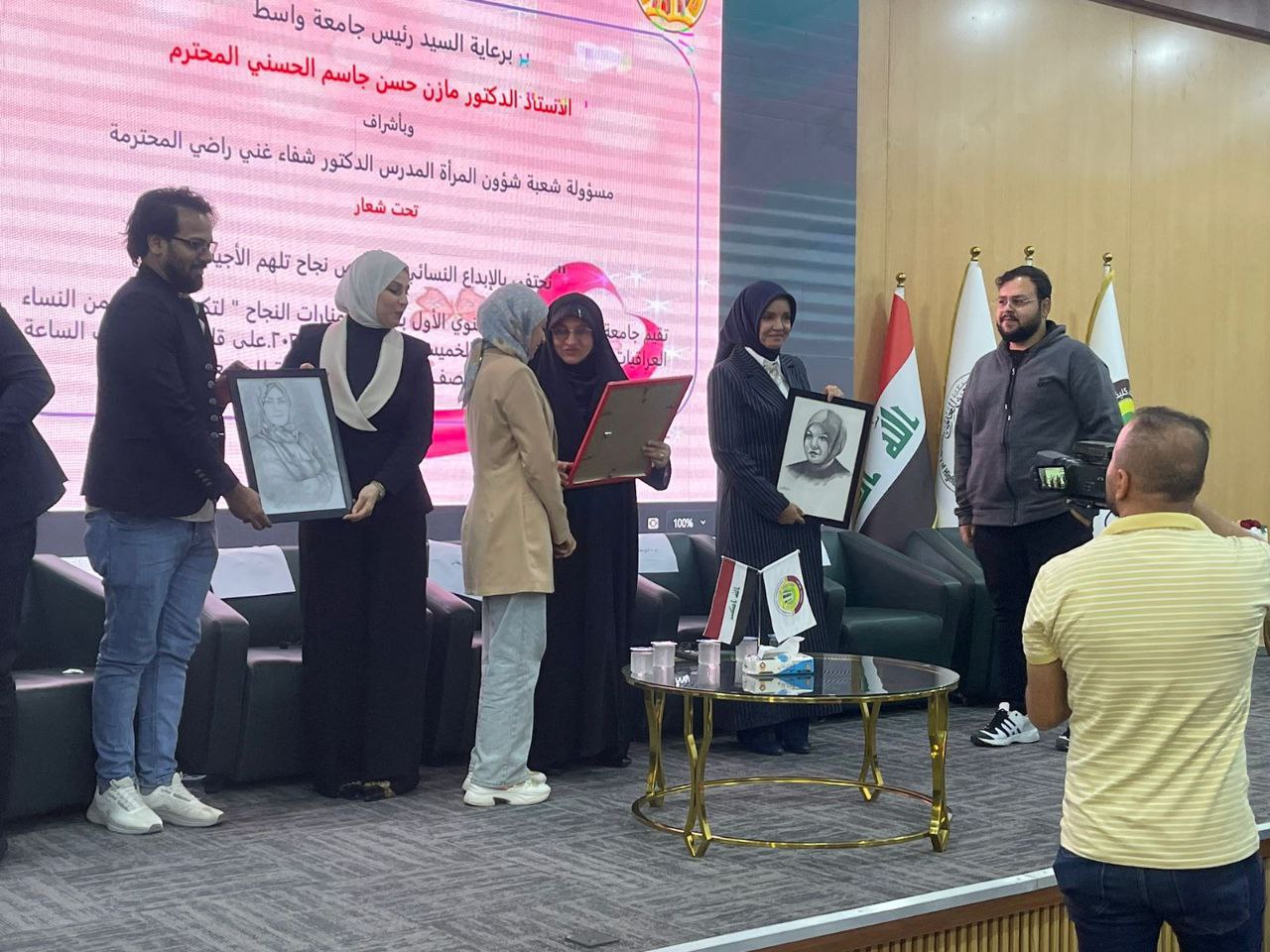 Prof. Dr. Zainab Al-Mulla Al-Sultani, The President of Al-Zahraa University for Women, along with a high-level delegation consisting of a slew of university professors partook in the first annual Wasit University festival. The aforementioned event dedicated to honor women's creativity. The festival's various activities shed light on the functional role of women in community development and the necessity to enhance their leadership skills. During the event, art and literature exhibitions also meant to emphasize women's roles and their creativeness across various disciplines. The attendees celebrated the women who have overcome adversity and climbed to the top. It is noteworthy that the University's President was honored as a notable example of a successful woman who established a feminist academic scientific premise, the first of its kind in Iraq.