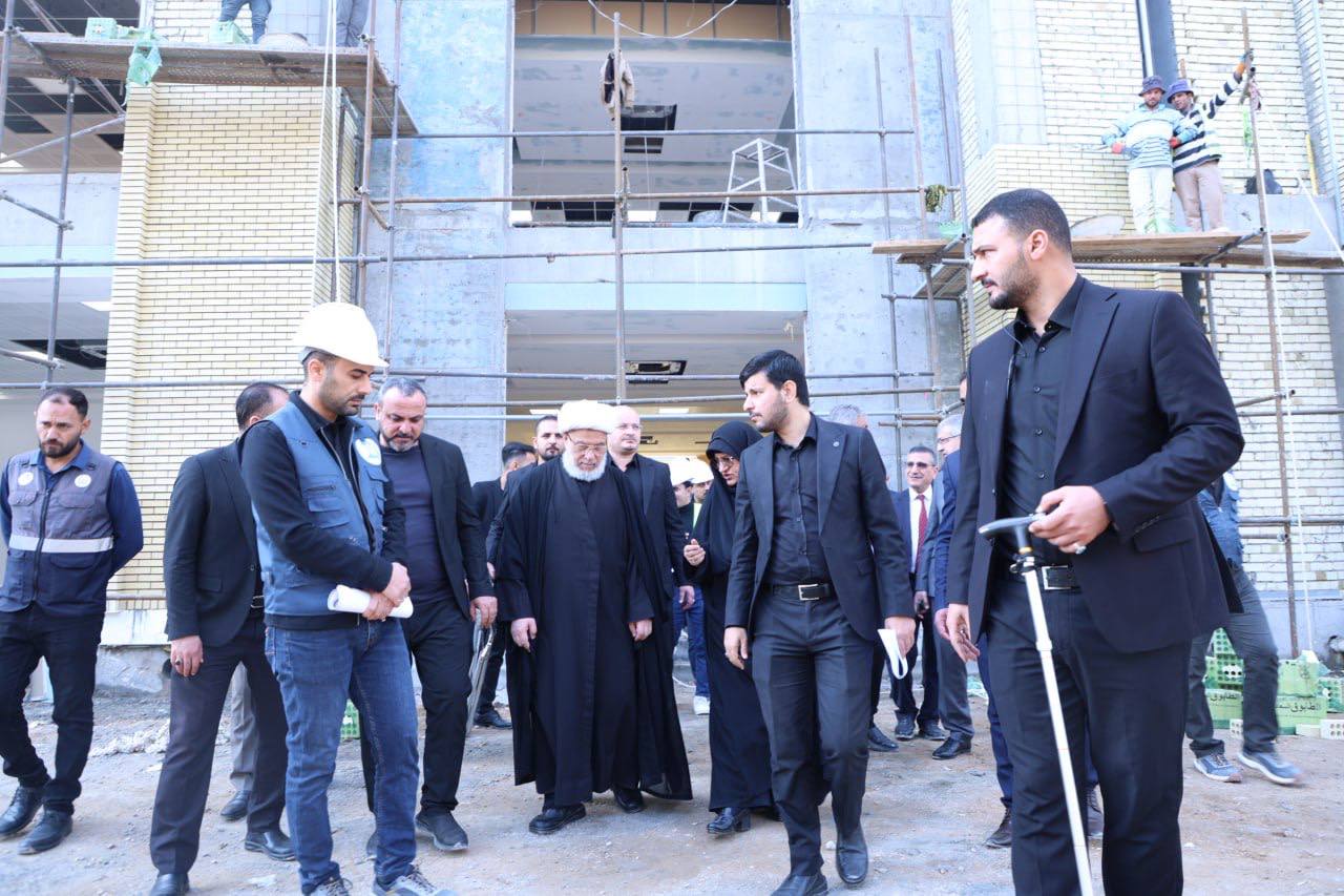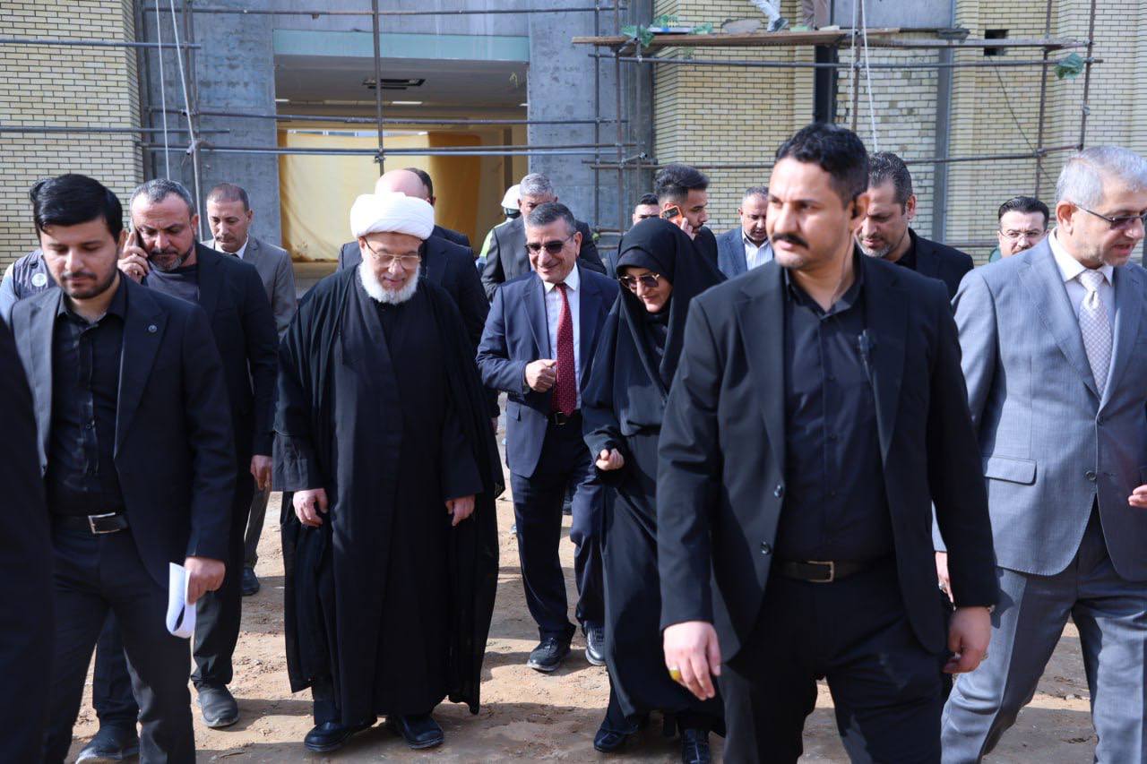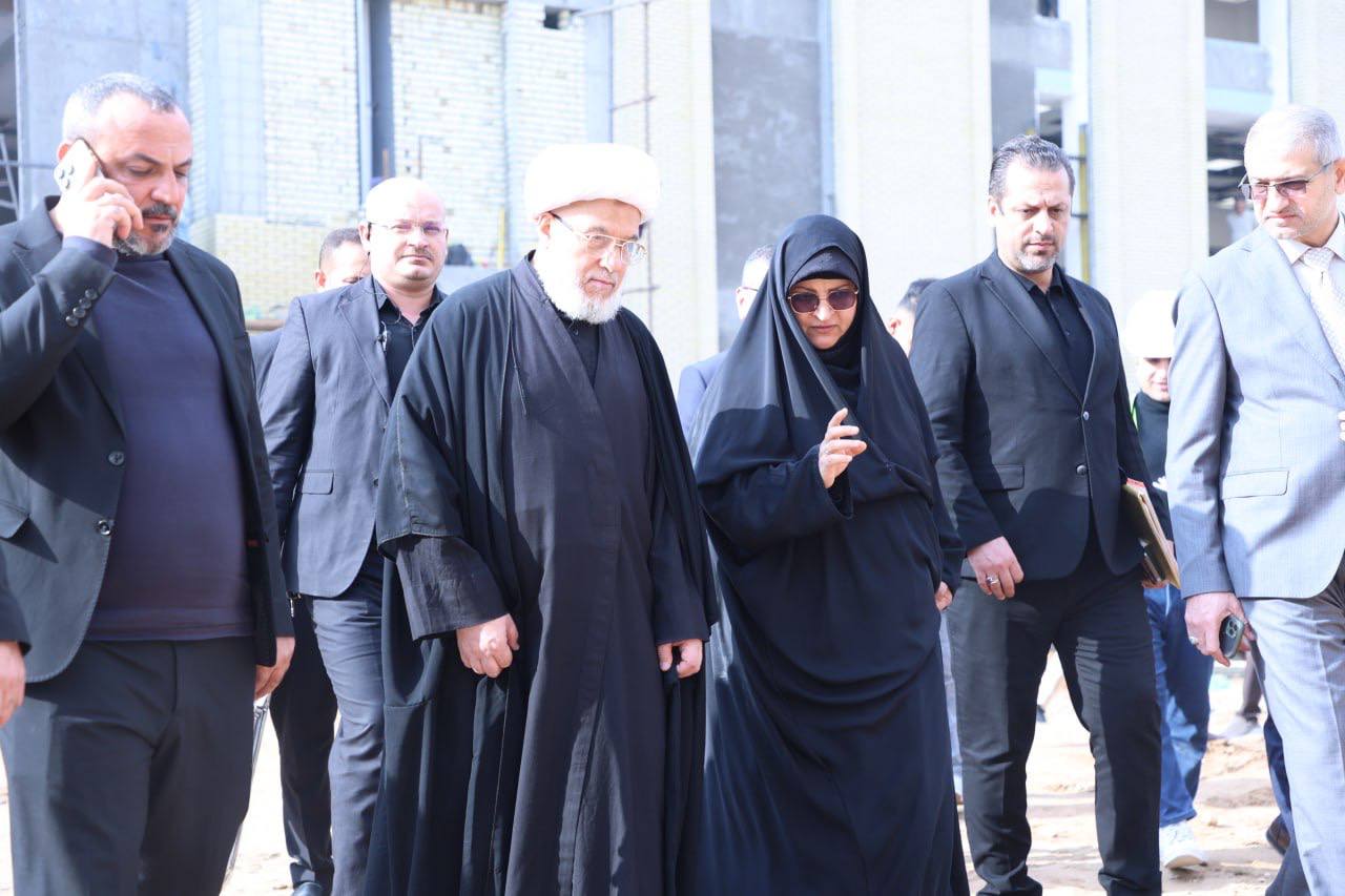 His Eminence Sheikh Abdul Mahdi Al-Karbalai, representative of the supreme religious authority, visited Al-Zahraa University for women to keep abreast of the progress and developments made by the University and its female students. Prof. Dr. Zainab Al-Sultani, University president, received and welcomed His eminence. Moreover, the tour included a visit to the new building to assess the construction progress made so far therein, in addition to the necessary requirements to expedite the building process with a view to put it into service in due time.