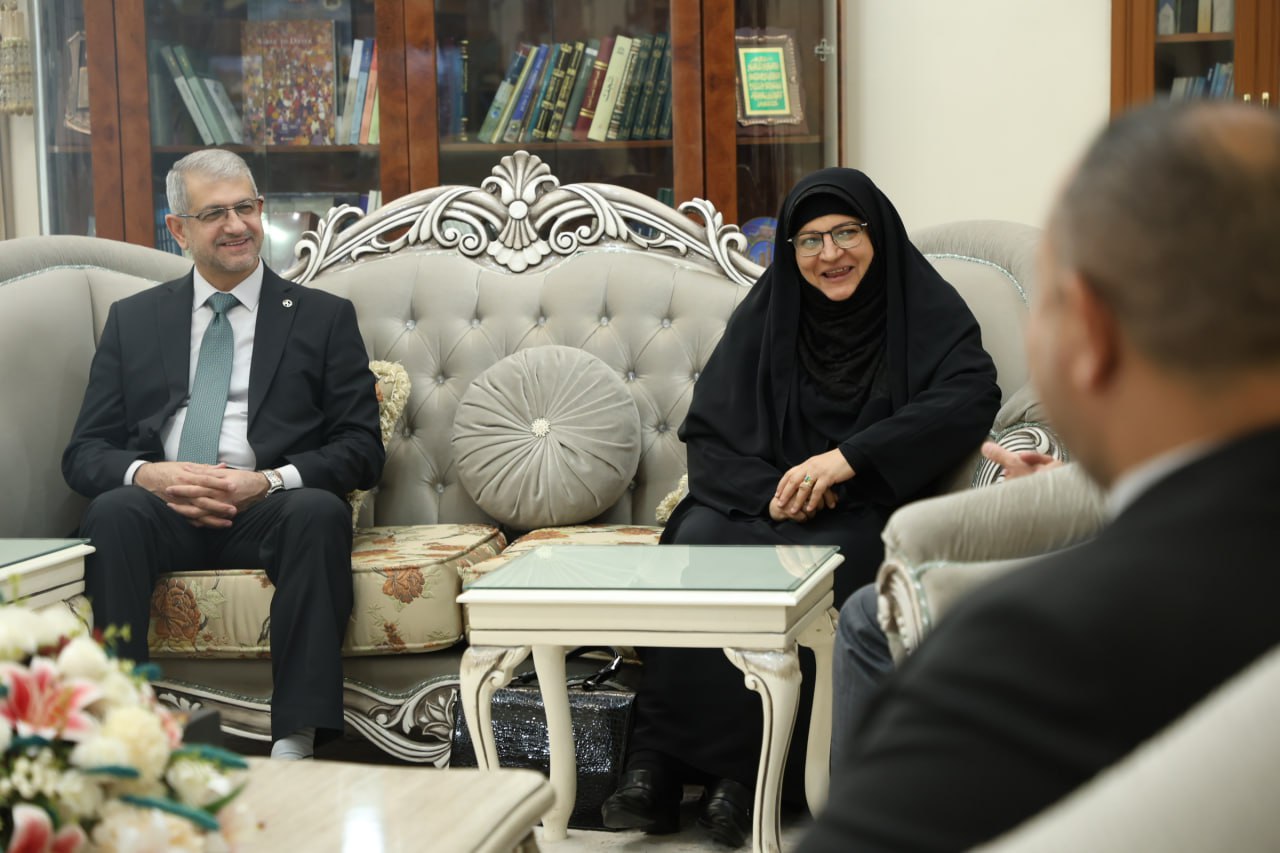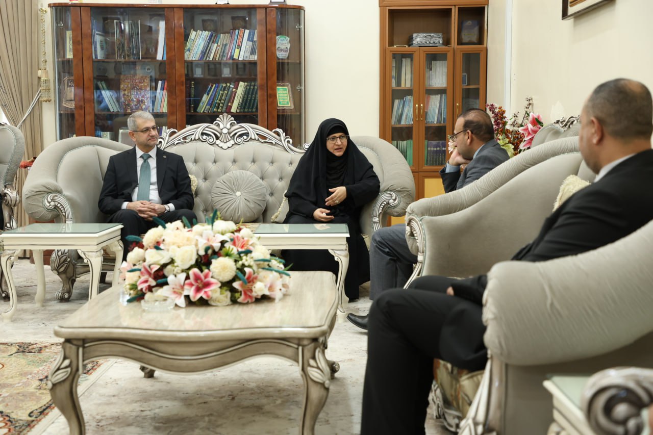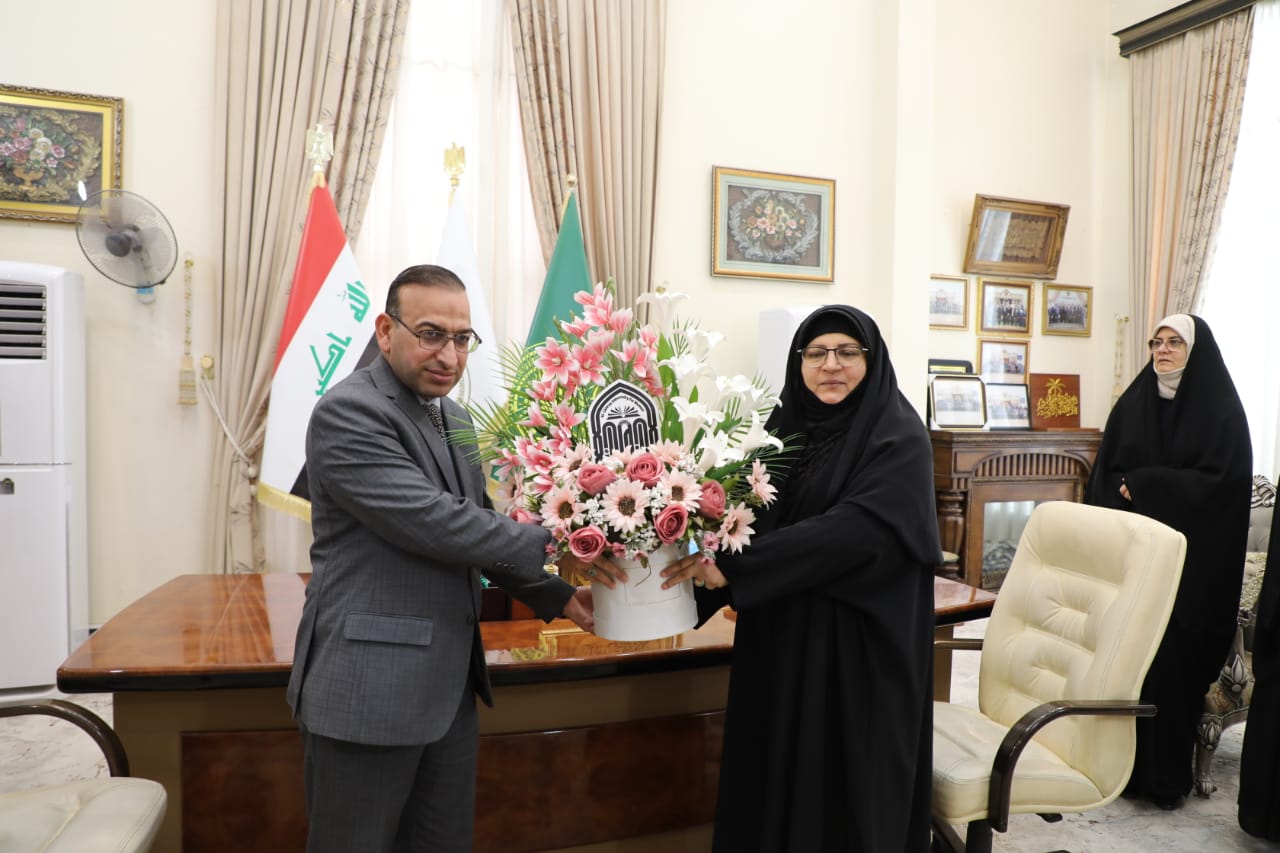 Prof. Dr. Zainab Al-Mulla Al-Sultani, President of Al-Zahraa University for Women, along with her escorting delegation visited Al-Kufa University to congratulate its newly appointed President Prof. Dr. Alaa Naji Al-Mawla. The two sides looked into ways of scientific cooperation between their universities. The potential signature of a cooperation agreement was also discussed in the aforementioned meeting. Such an agreement could facilitate the exchange of scientific expertise across various fields. Additionally, the potential agreement could result into academic exchange programs, joint scientific research, scientific conferences and seminars, as well as jointly supervised graduation projects of final-stage students. This cooperation is an integral part of the pursuit of scientific and knowledge integration, which is intended to enhance the quality of higher education and address the demands of scientific and societal development.